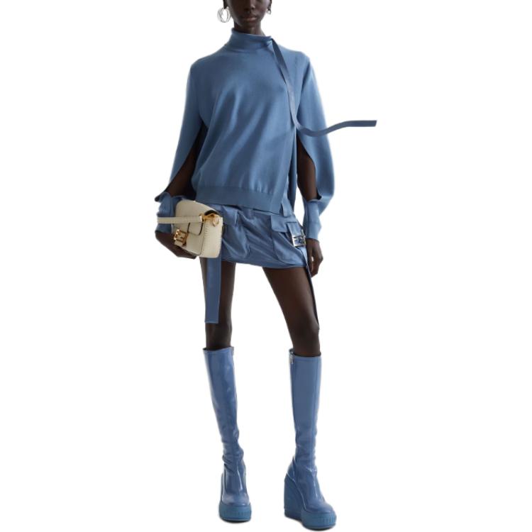 Футболка с пряжкой и детализированным атласным оформлением FENDI, синяя 40 865₽