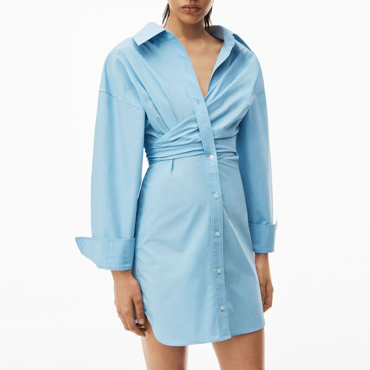 Собранное хлопковое платье-рубашка Alexander Wang, синий