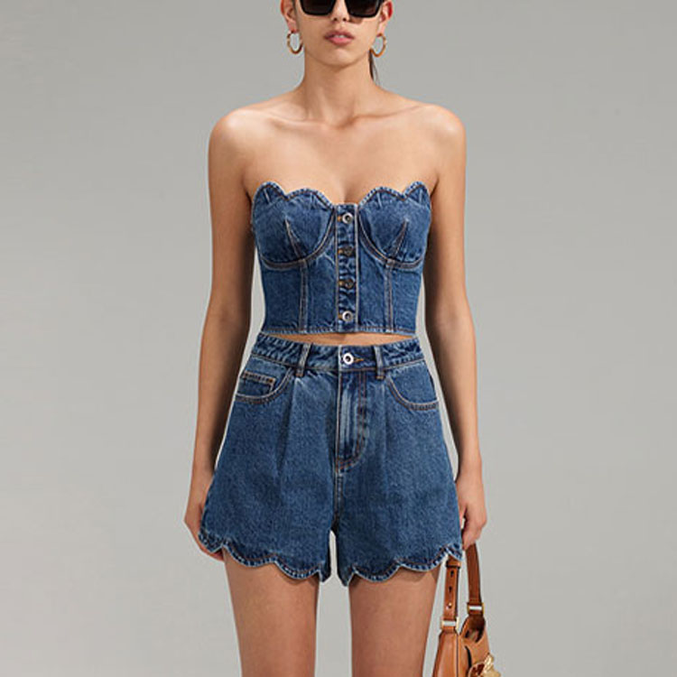 Женский топ без бретелей из джинсовой ткани голубого цвета Self-portrait