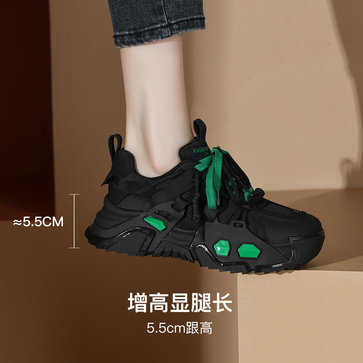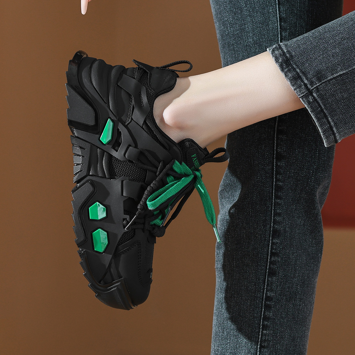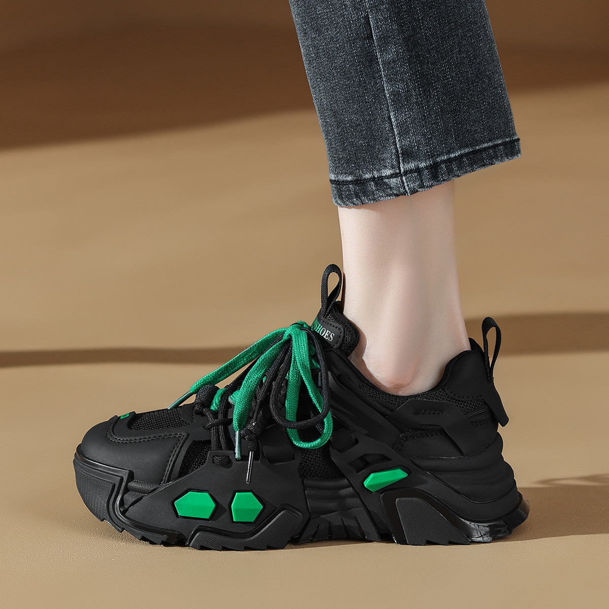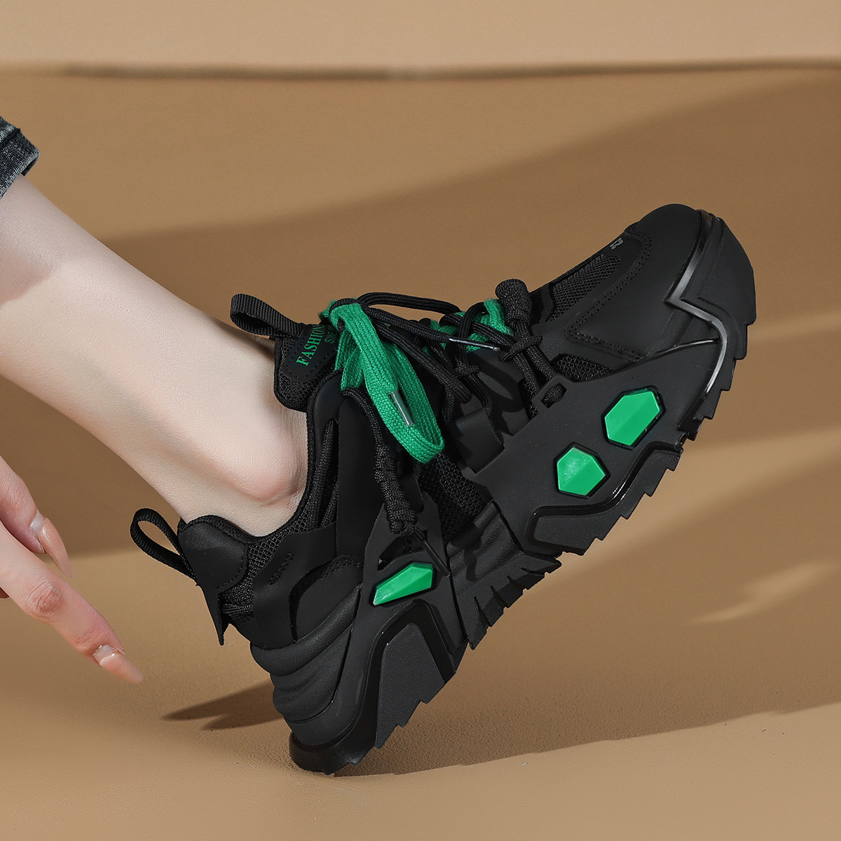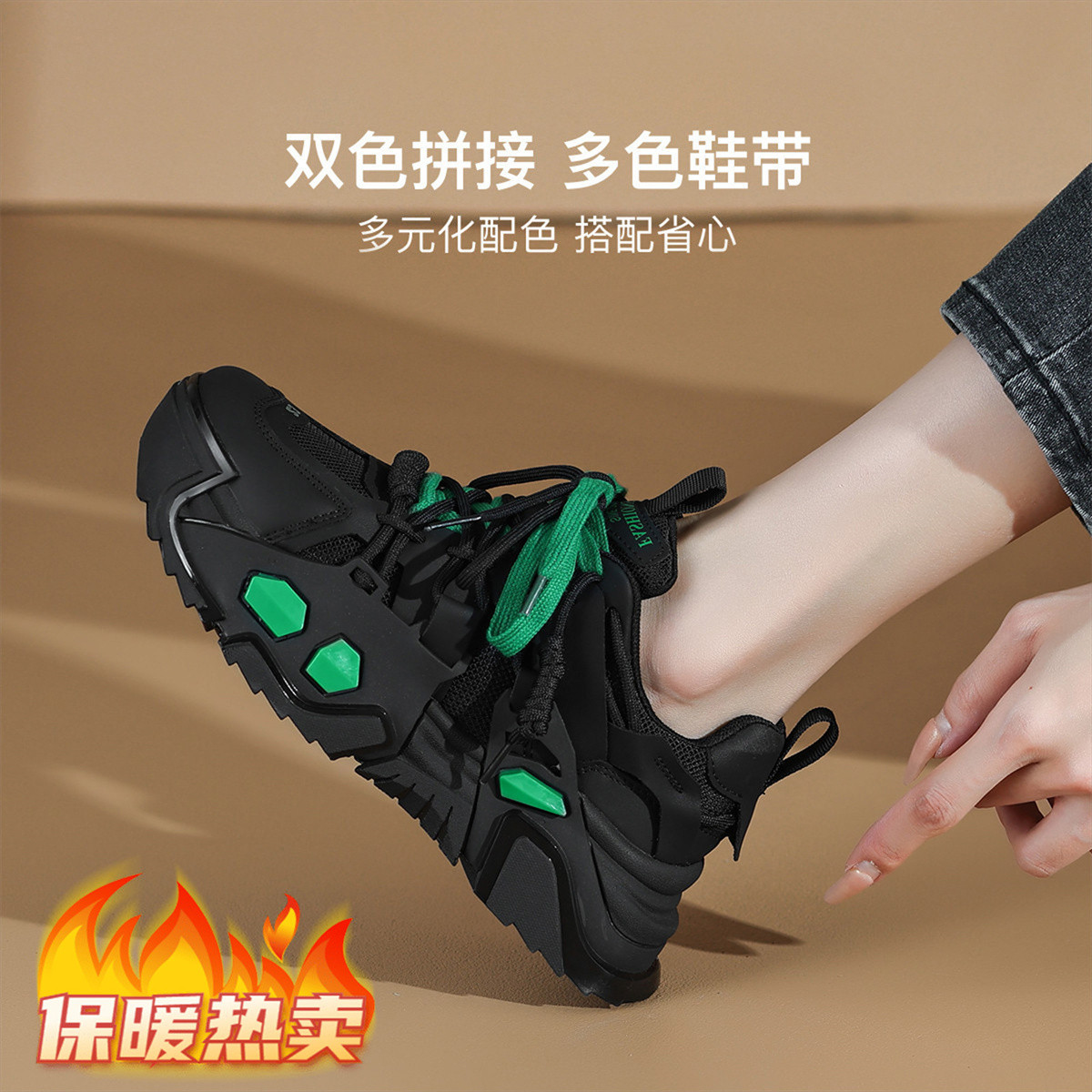 Массивные кроссовки женские черные CAMEIDO, утепленные черным флисом