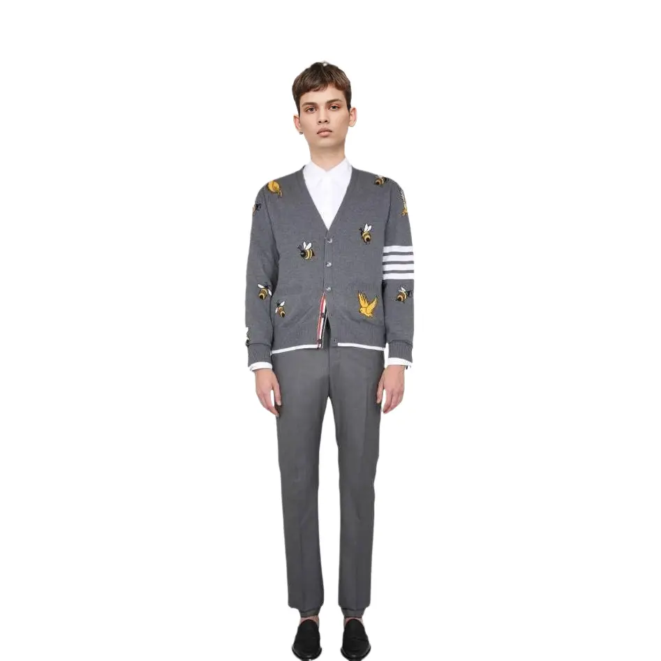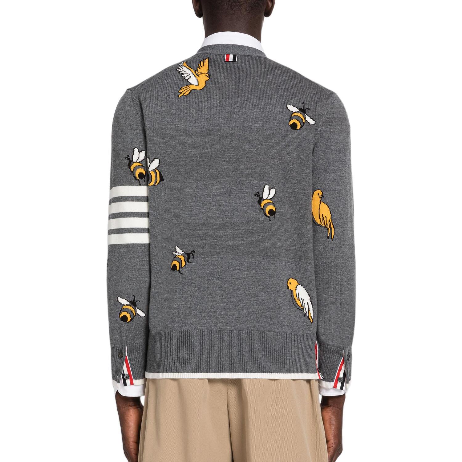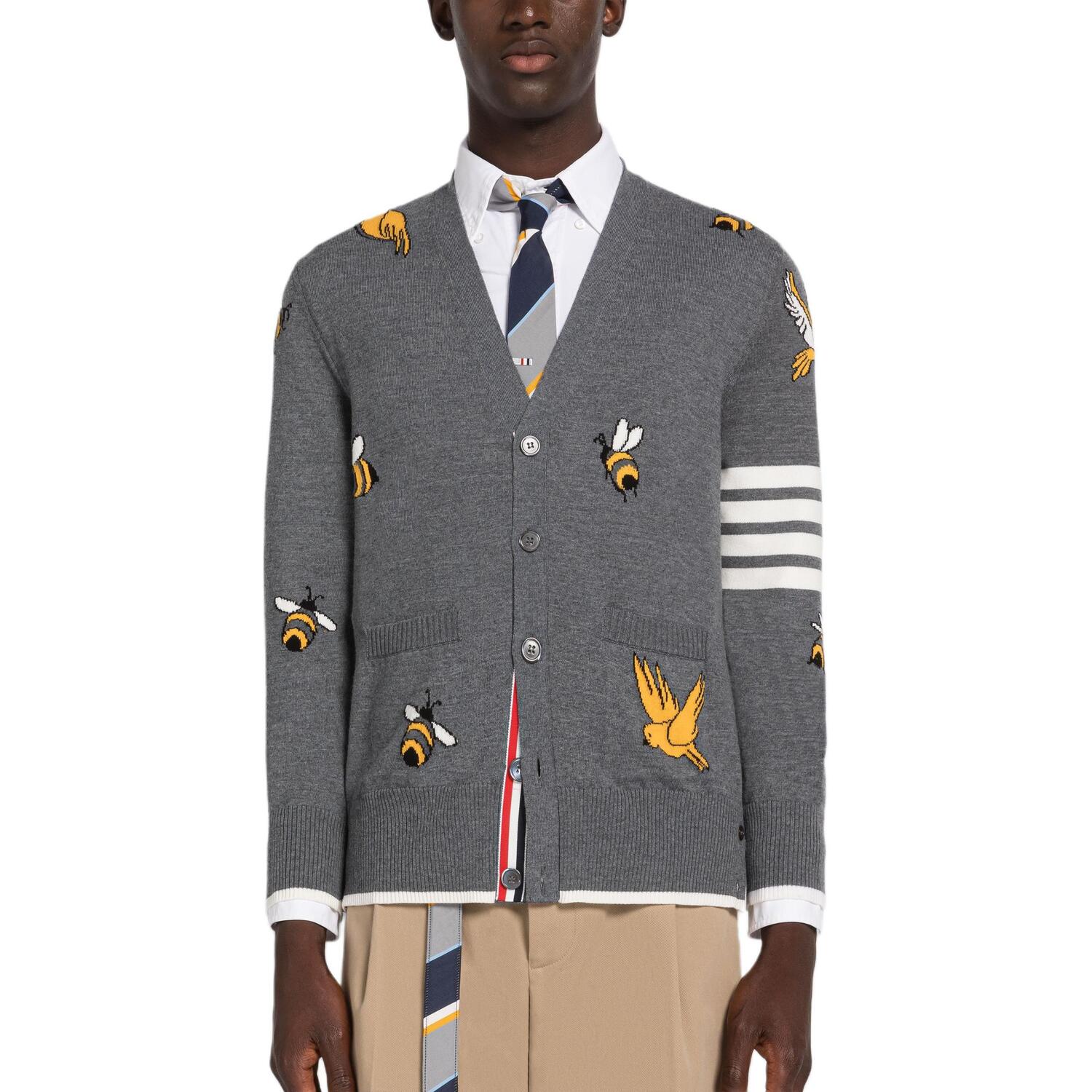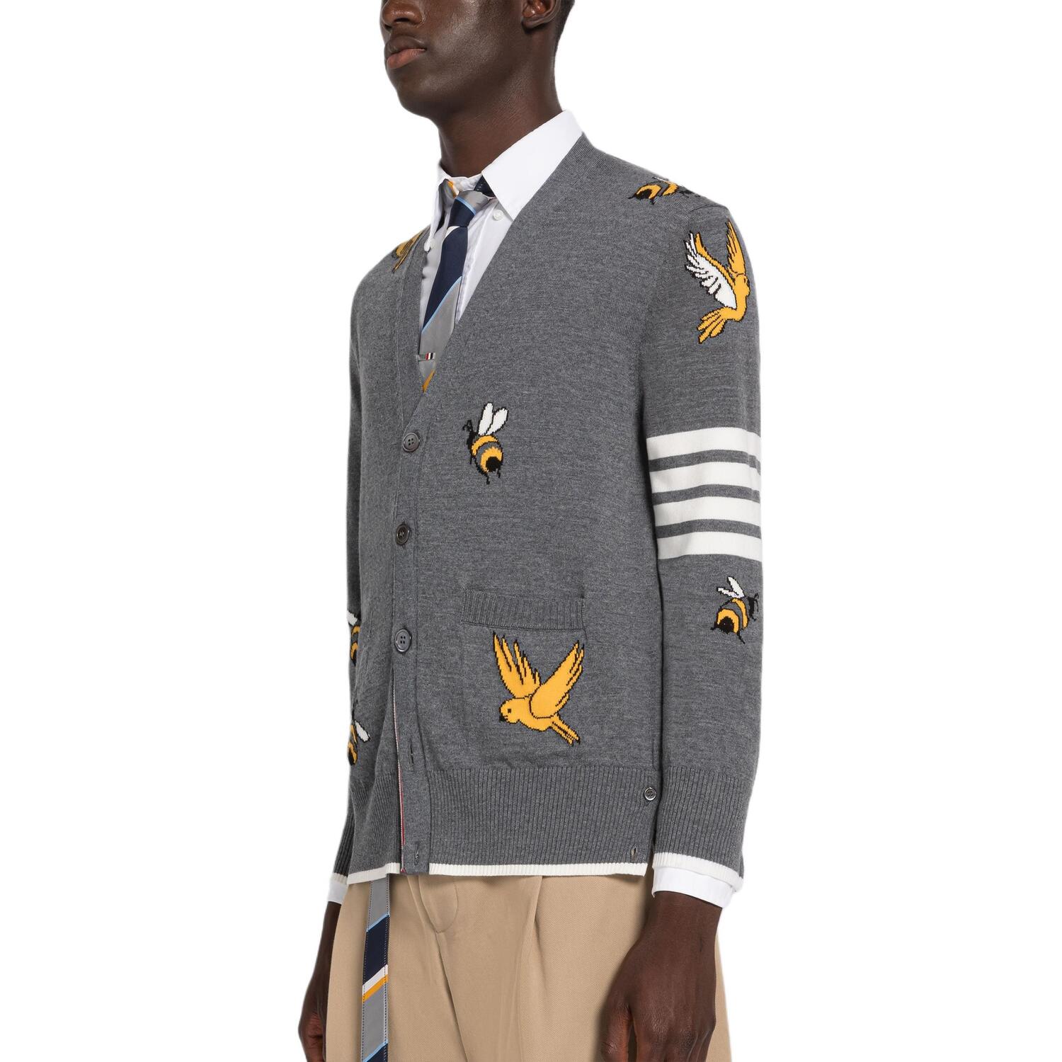 Четырехполосный кардиган на пуговицах THOM BROWNE, серый 65 258₽