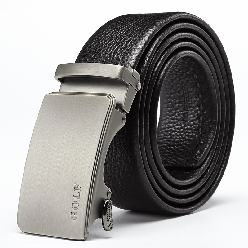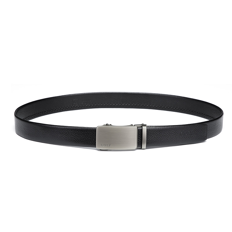 Кожаный ремень мужской GOLF, черный ганметалл (подарочный набор)