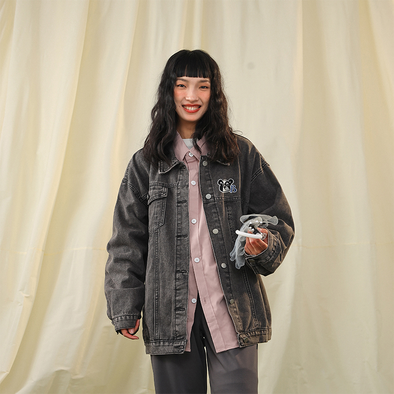 Джинсовая курка унисекс BRUMAIRE, серая майка и белый свитшот
