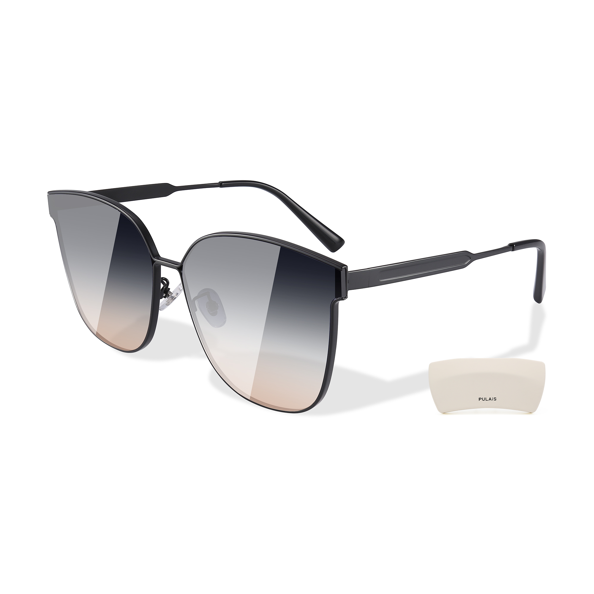 Солнцезащитные очки квадратные унисекс PULAIS, черная оправа с градиентными синими линзами