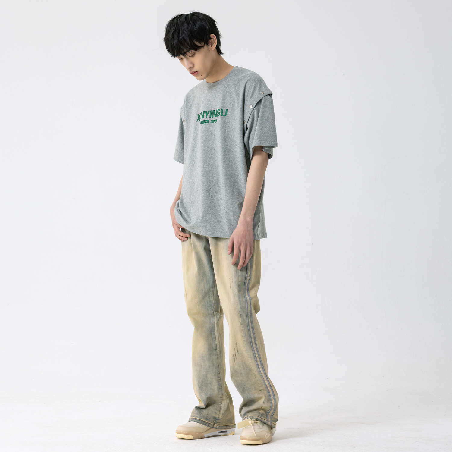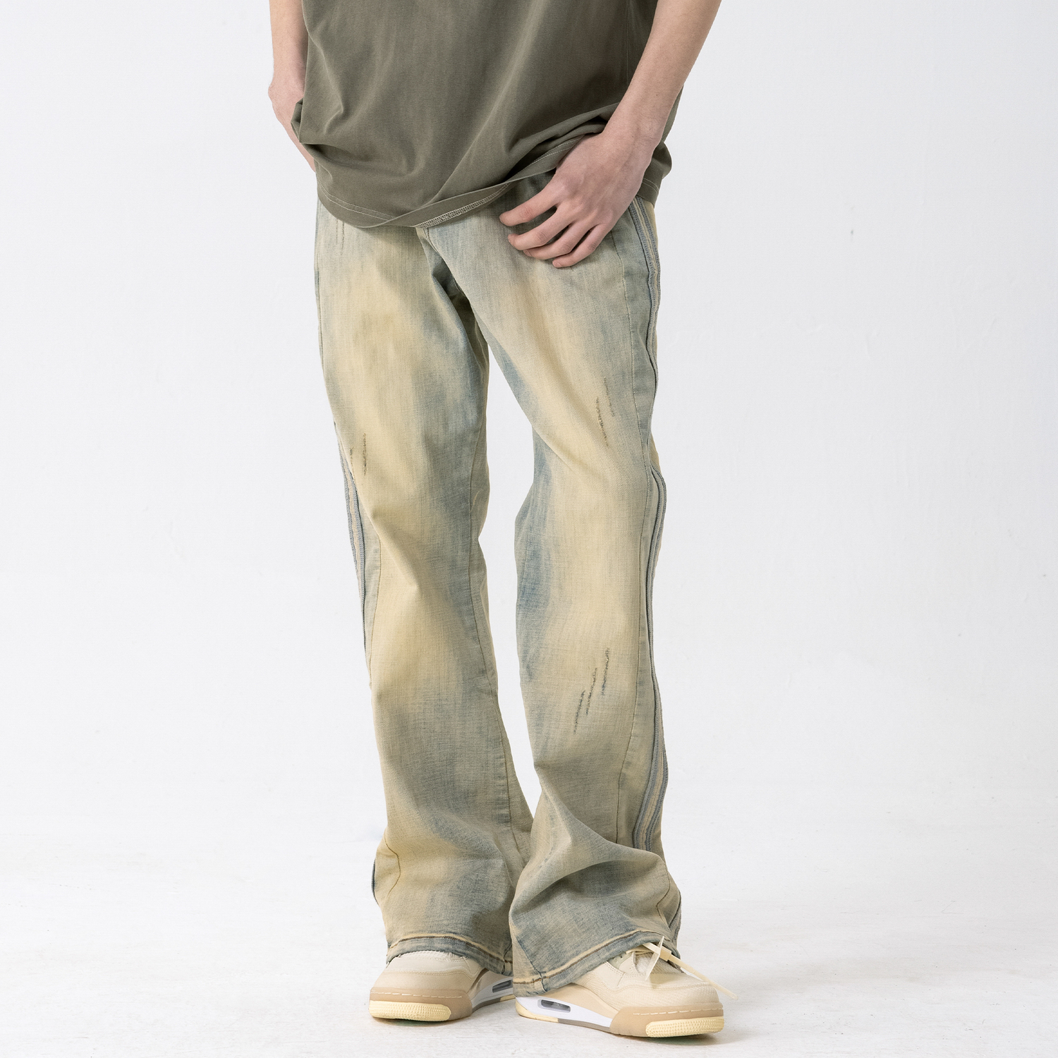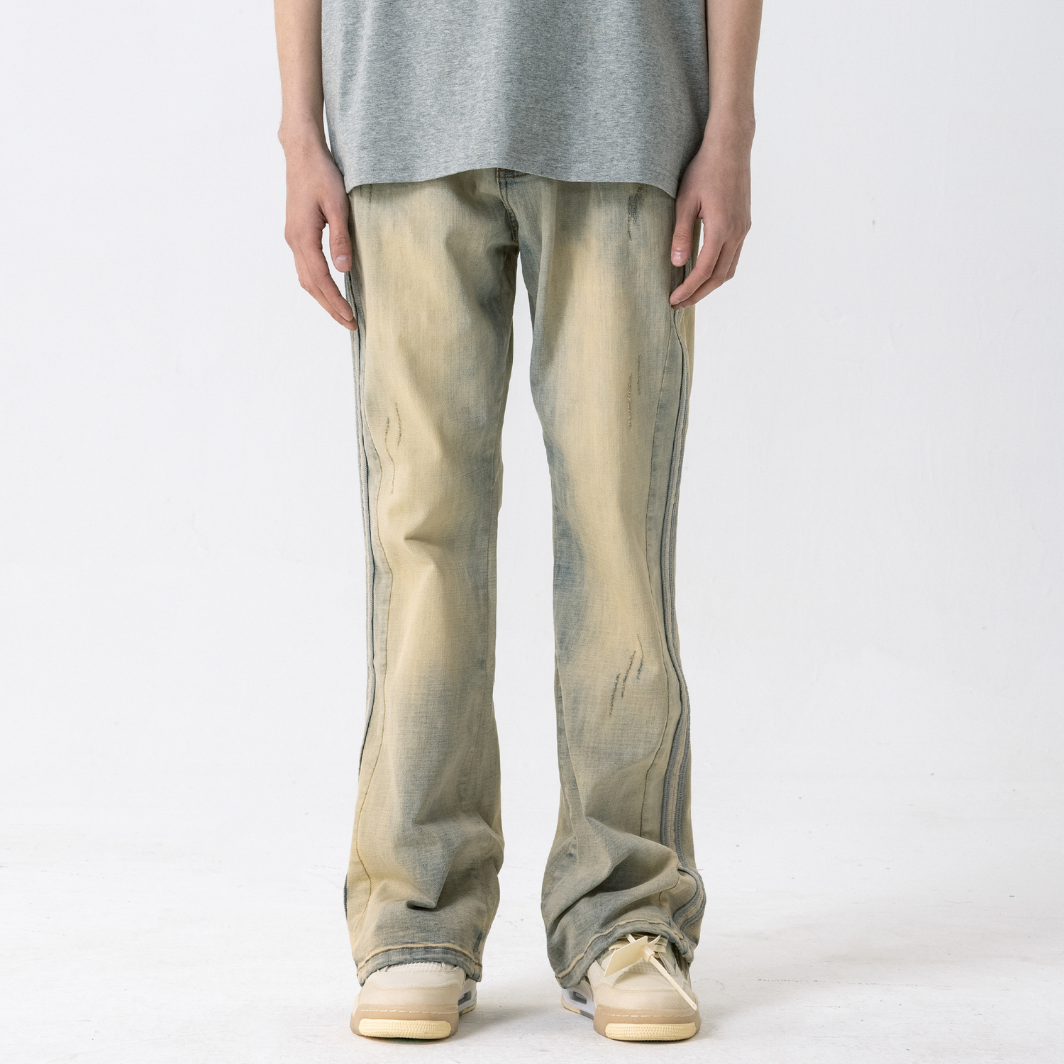 Инструкция по стирке: Джинсовые изделия линяют во время стирки, потеря цвета — это нормально. Рекомендуется проветривать помещение без загрязнений. При ручной стирке не рекомендуется добавлять моющее средство (может содержать отбеливающие компоненты)/отбеливатель/флуоресцентный агент к загрязненным участкам! Выверните изделие наизнанку перед стиркой и не смешивайте разные виды стираемой одежды. Не подвергайте воздействию солнечных лучей. Разница в цвете: цвет изделия может немного измениться после стирки. Интимный дизайн: все джинсы продаются с петлями (не для вторичной продажи). Особая обработка: после стирки молния изнашивается и ржавеет, а края карманов и штанин имеют разную степень повреждений.