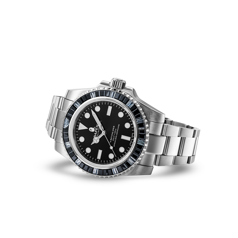 Bape Type 1 Bapex Crystal Stone Watch Silver White A BATHING APE, Black BKX