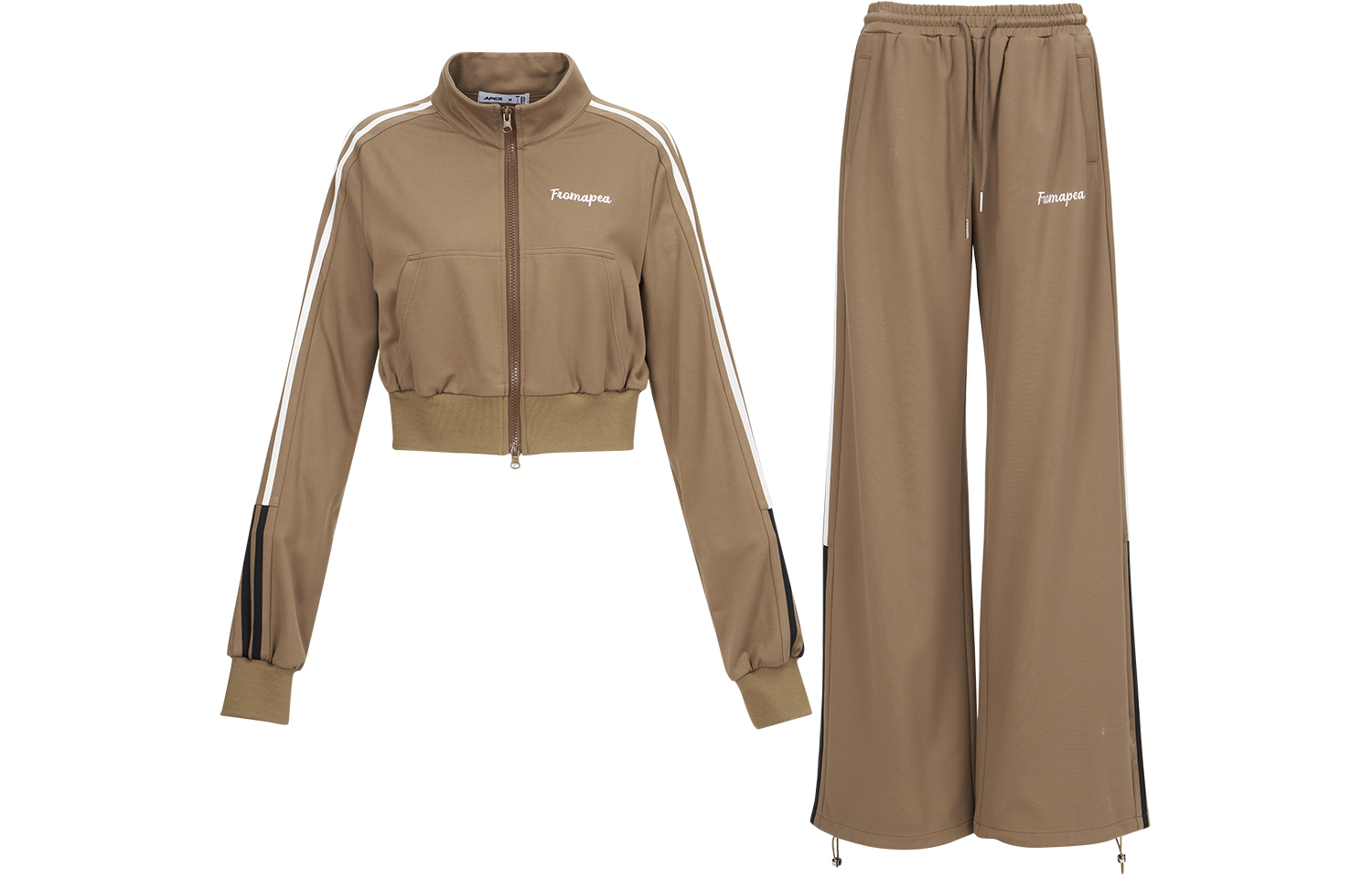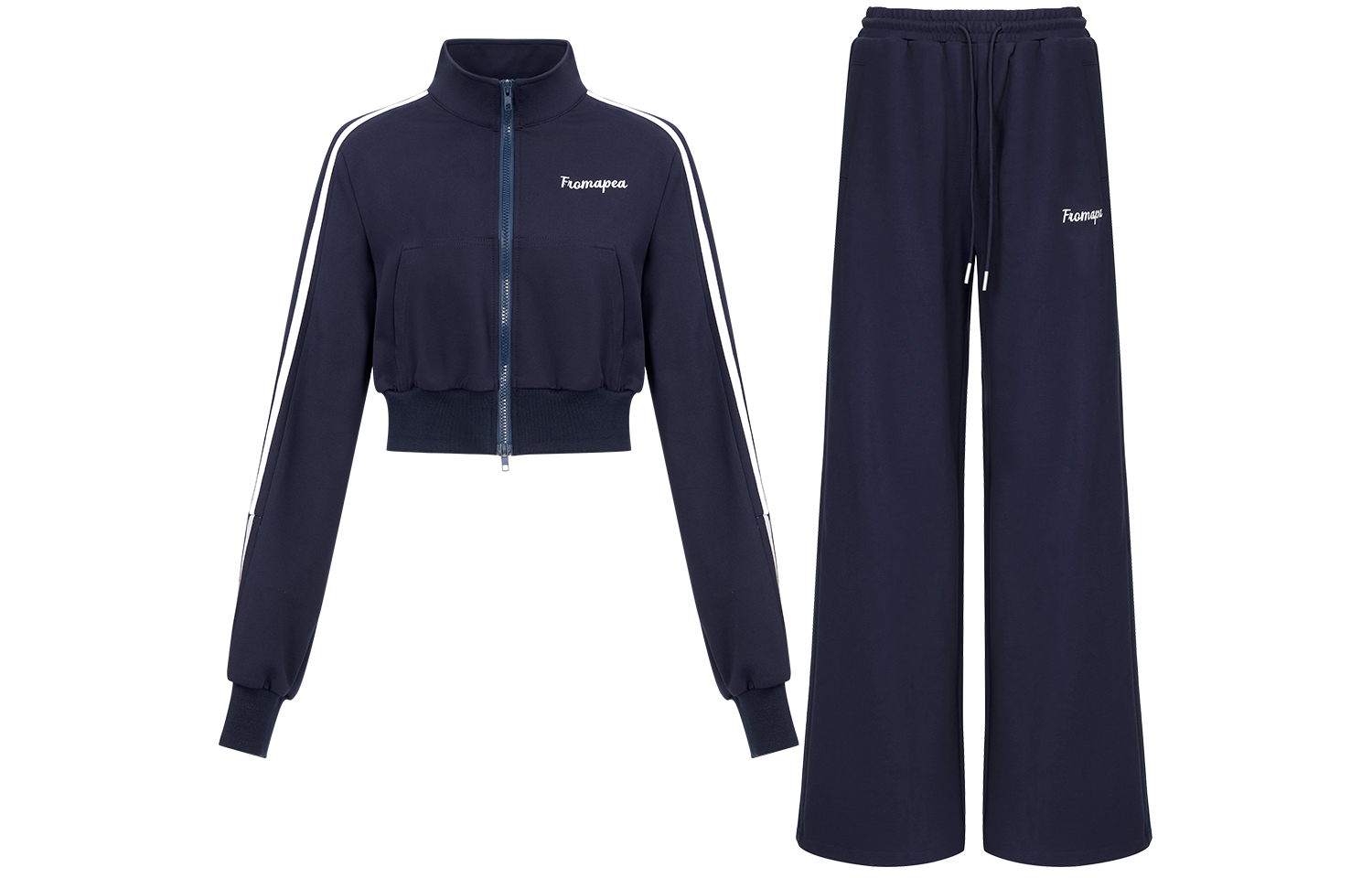 Это американский ретро-спортивный костюм. Рукава верха выполнены из контрастных полос, а на груди вышит фирменный логотип. Воротник-стойка более изысканный. Двусторонняя молния позволяет носить его как спортивную куртку для повседневной носки, а топ-трубу можно надеть под него на вечеринку, чтобы выглядеть сексуальной маленькой красоткой. Брюки имеют эластичный пояс, что делает их более свободными. Прямые брюки имеют эластичные шнурки и пряжки «свиной нос» снизу, что позволяет свободно регулировать их посадку. Их можно завязывать или носить прямо, и по форме они больше похожи на ретро-спортивный костюм с брюками.