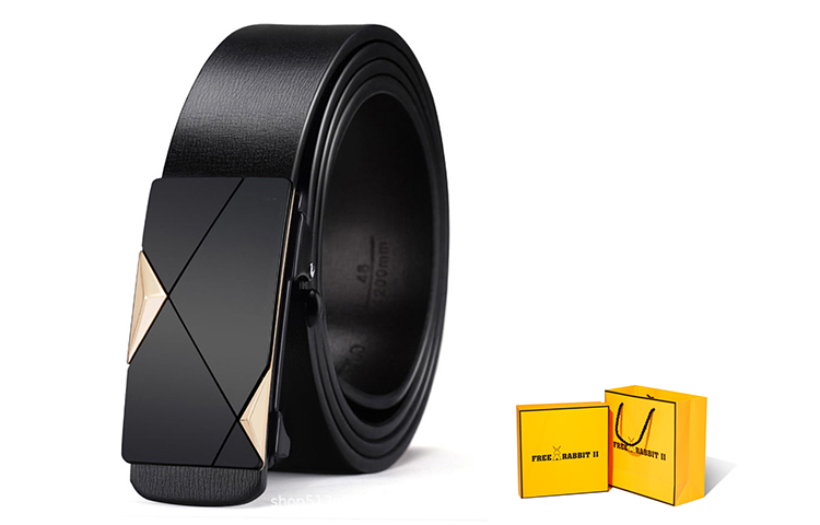 Кожаные ремни унисекс FREE RABBITⅡ, черный серебристый + ярко-желтый короб