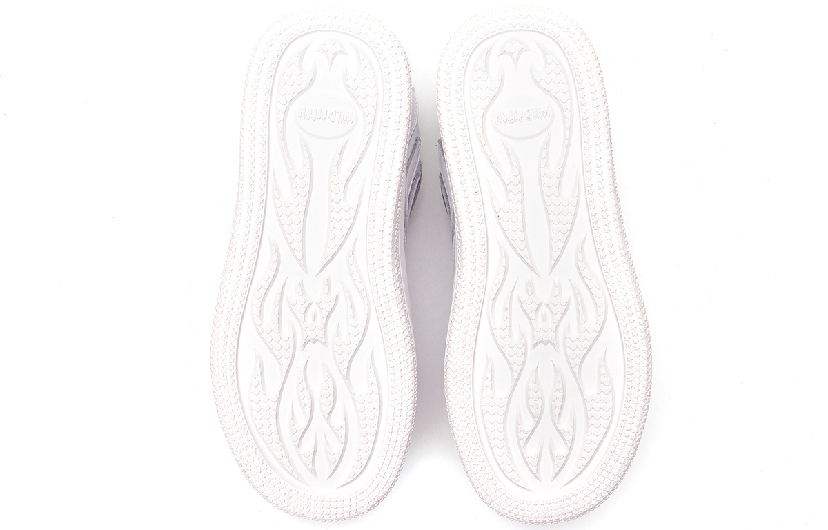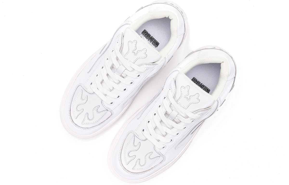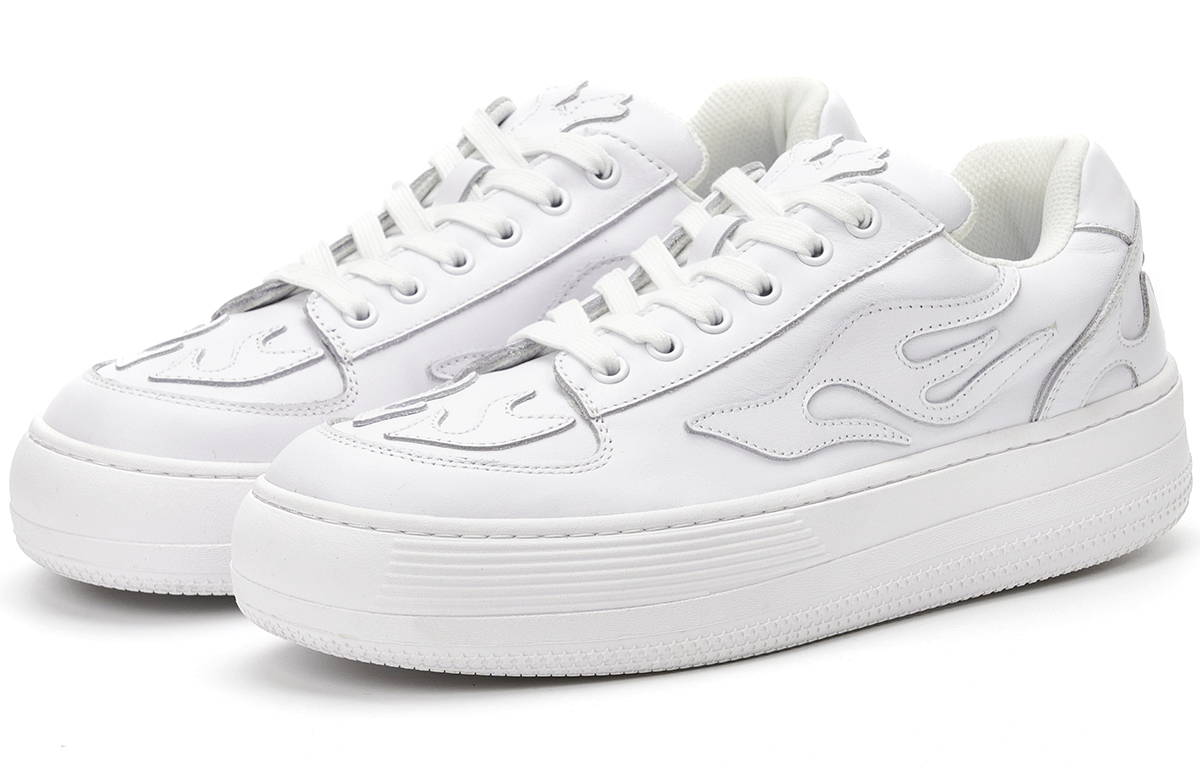 Wild Pitch объединяет уникальные идеи множества креативщиков, дизайнеров и любителей кроссовок, стремясь создать совершенно новый гардероб для молодых людей, живущих в мире уличного стиля. Эти кроссовки отличаются верхом из чисто-белой кожи и толстой подошвой с широким носком. Подошва с текстурой «пламени» обеспечивает нескользящую и износостойкую поверхность.