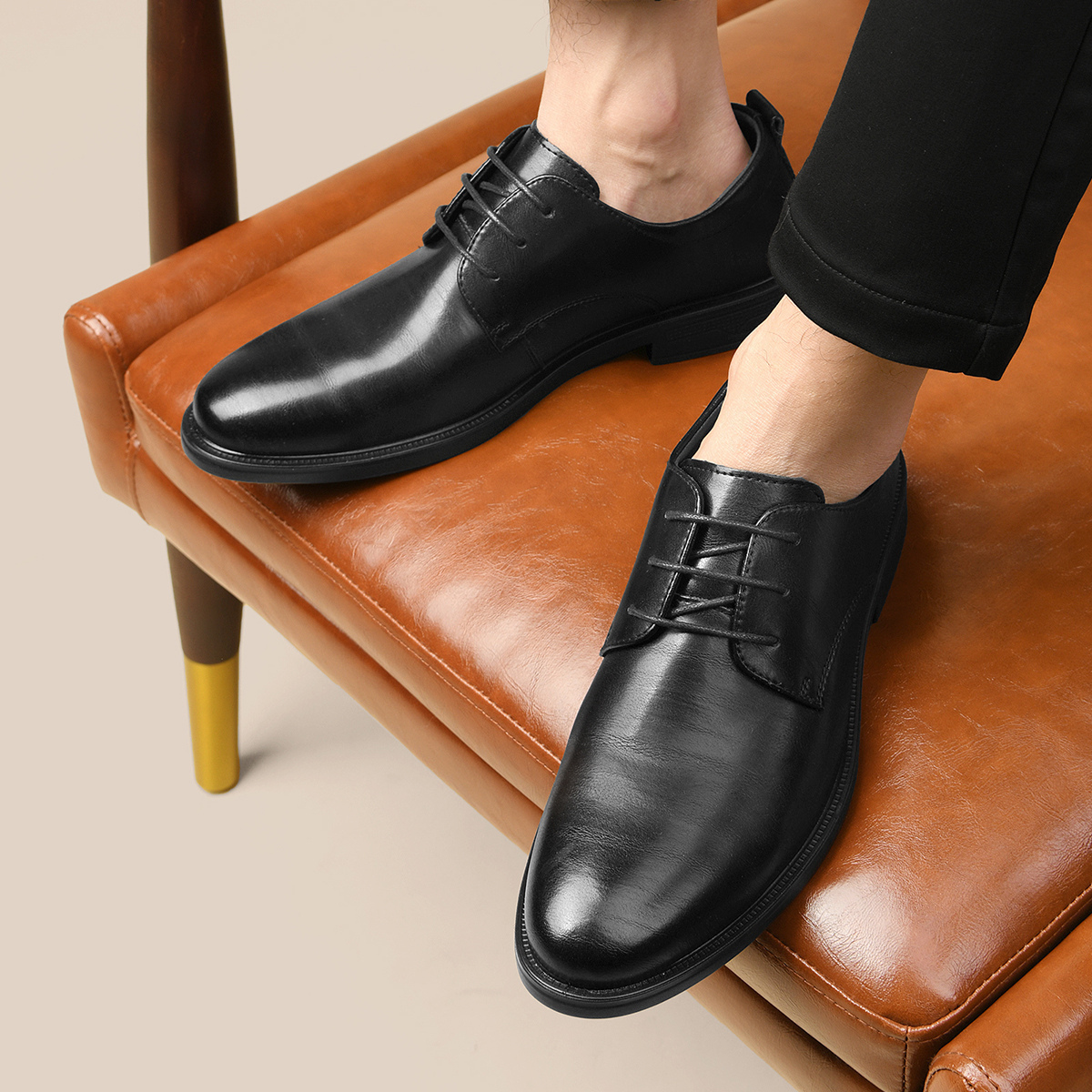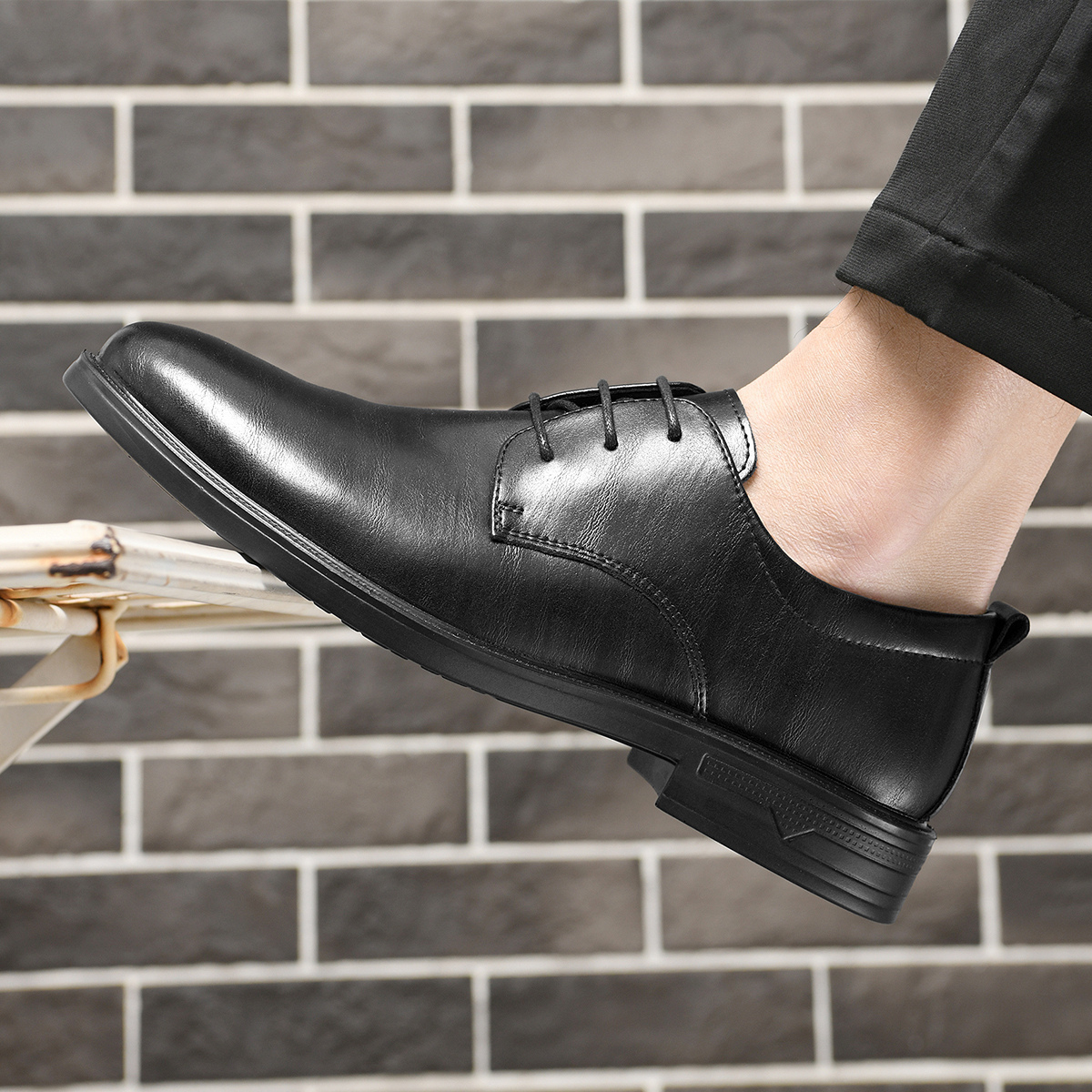 Туфли мужские черные HLA низкие, [Коробка] Черные улучшенные