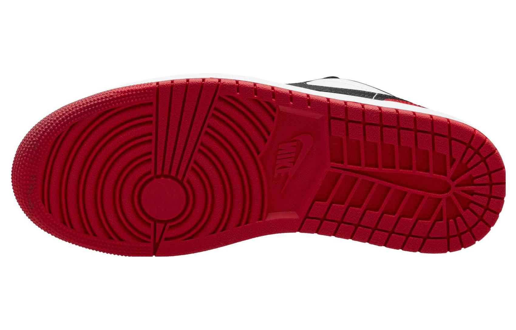 Эта модель Air Jordan 1 Low, выполненная в белой, чёрной и университетско-красной расцветках, выполнена из обычной кожи с сетчатым язычком и подкладкой. Кроссовки отличаются белой боковой панелью, чёрными накладками, логотипами Swoosh, шнурками, язычком и подкладкой, а также красными носком, пяткой и подошвой.