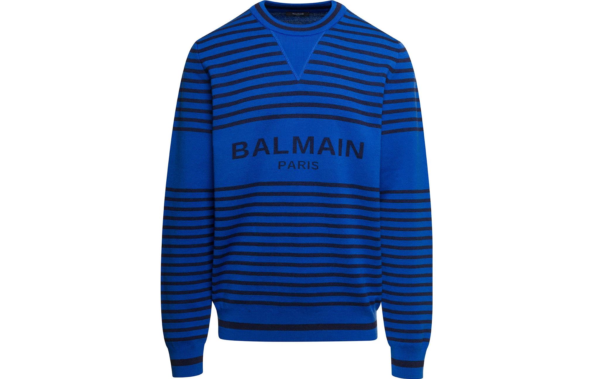Полосатый джемпер с интарсией логотипом BALMAIN, синий 40 014₽