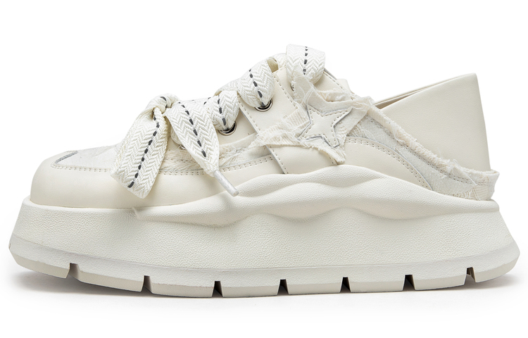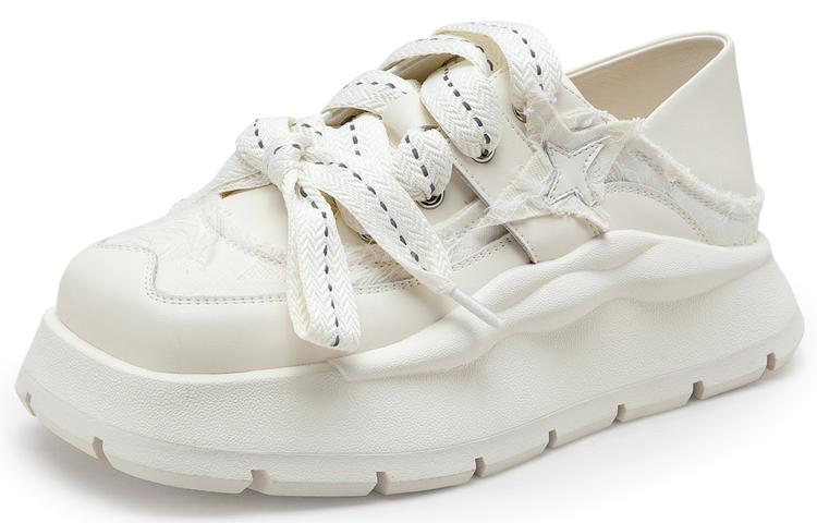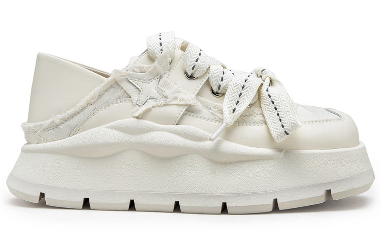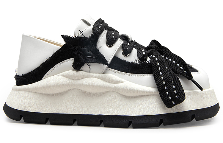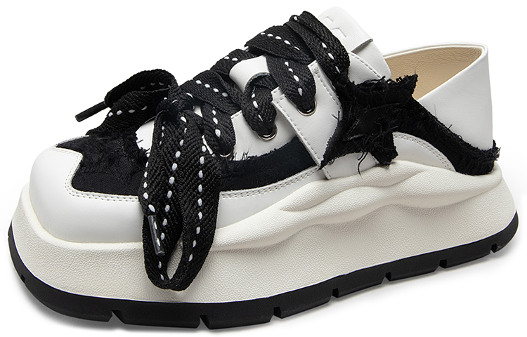 Закруглённый 3D-носок и просторная подошва подходят для стоп разной формы, обеспечивая комфорт и лёгкость шага. Многогранный деконструированный верх с игривыми элементами пэчворка и фирменной шнуровкой создаёт модный и энергичный образ. Подошва толщиной 4,5 см и лёгкая, прочная резиновая подошва визуально удлиняют ноги и мгновенно превращают вас в стильную девушку уличного стиля.