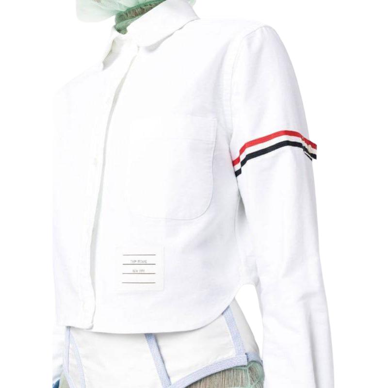 Кропированная хлопковая рубашка THOM BROWNE, белая 48 002₽