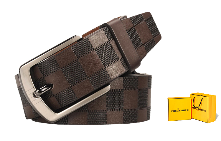 Кожаный ремень мужской FREE RABBITⅡ, кофе + ярко-желтый короб