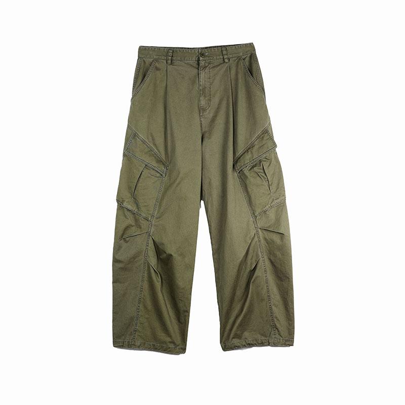 1. Модель создана на основе классических военных брюк OG-107 и отличается свободным кроем, подчеркивающим верхнюю часть тела. 2. Множество складок создают многослойный силуэт. 3. Большие наклонные карманы обеспечивают как декоративный, так и функциональный элемент.
