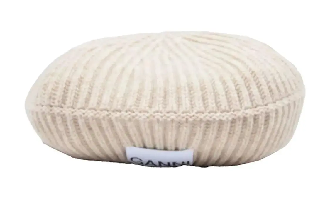 Берет с логотипом GANNI, ребристая вязка, светло-кофейный