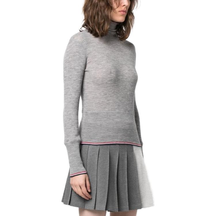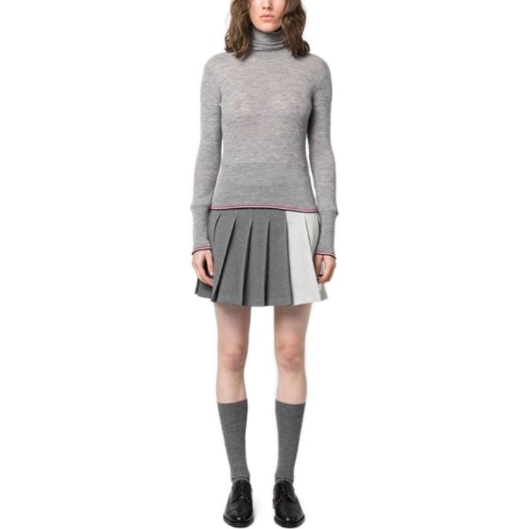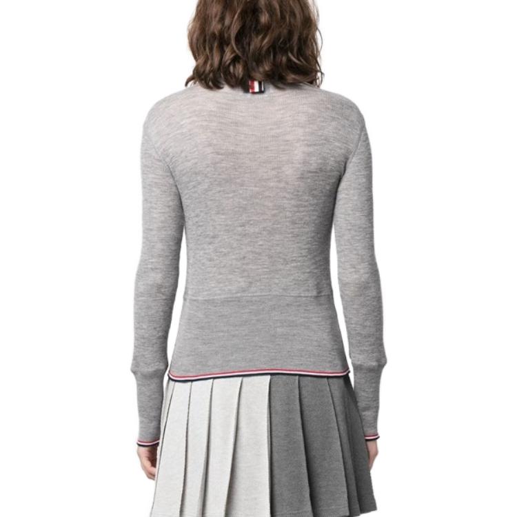 Футболка с полосатой отделкой THOM BROWNE, серая 38 391₽