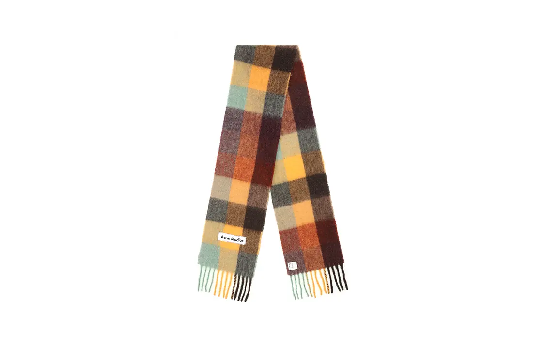 Шерстяной шарф с узором клетка Acne Studios, коричневый 29 027₽