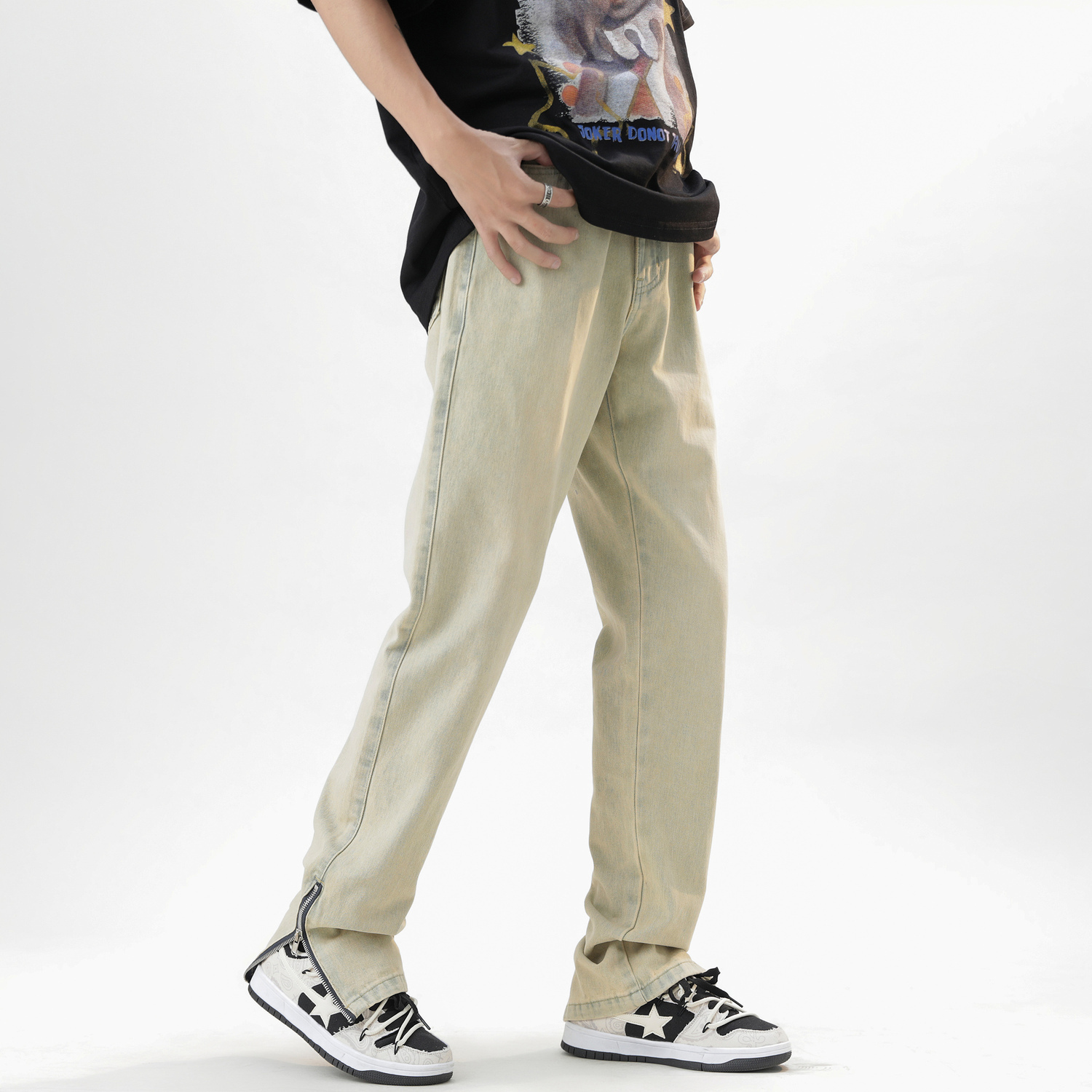 Из-за яркости и угла падения света на съёмке, полученный товар может иметь небольшие цветовые отклонения от изображения. Джинсы — это стираемые изделия, и они могут слегка выцветать, но это не является проблемой качества.