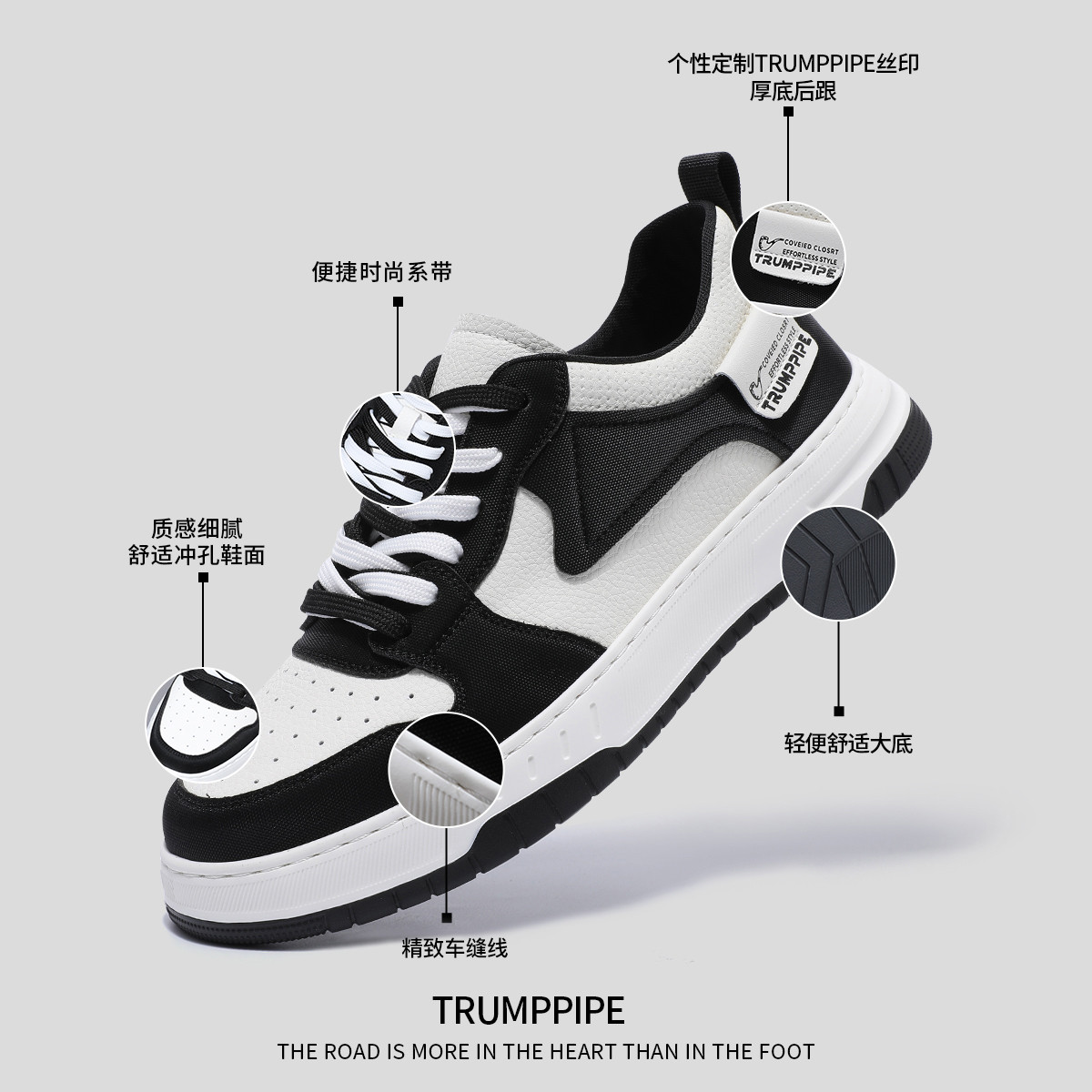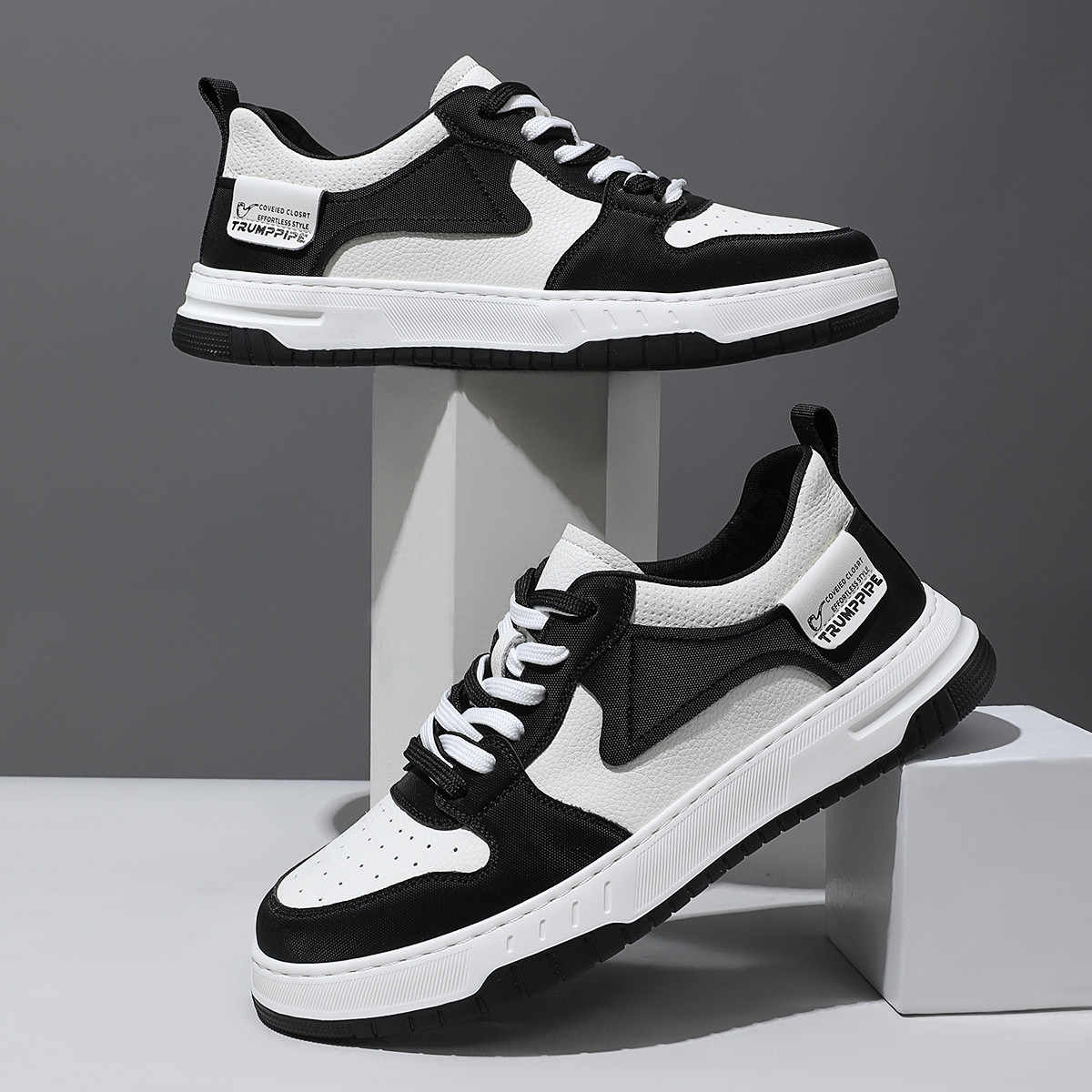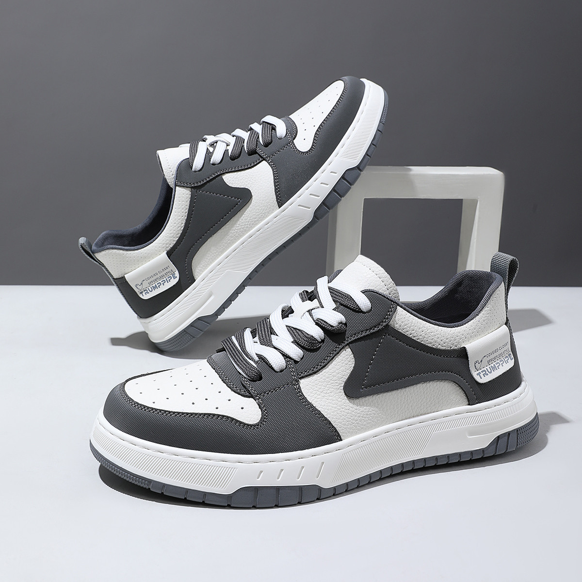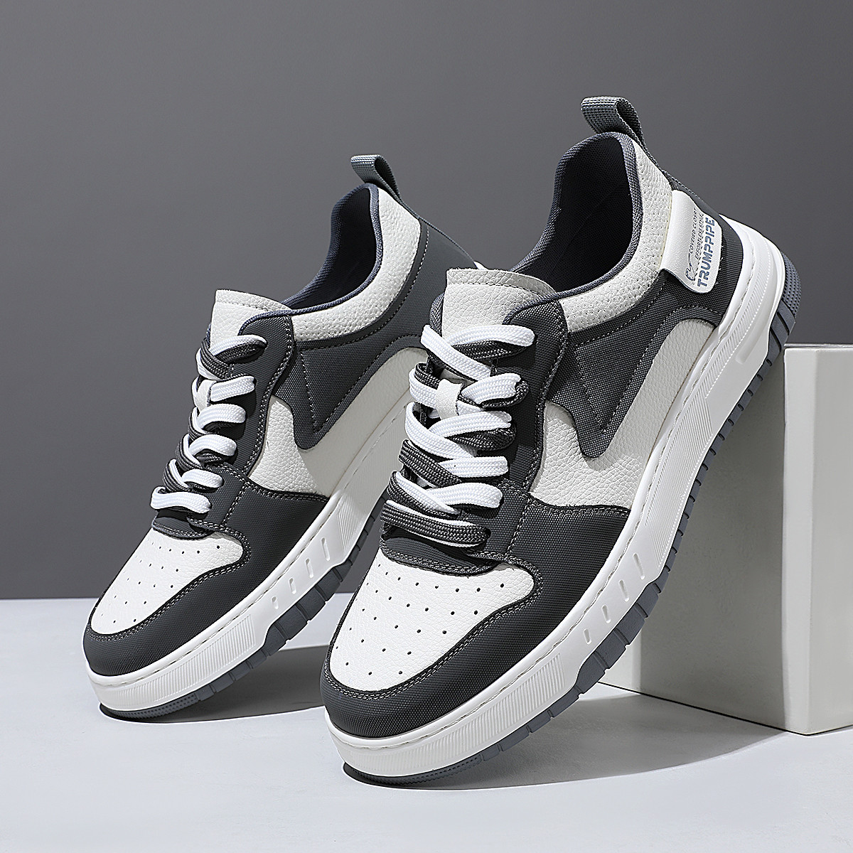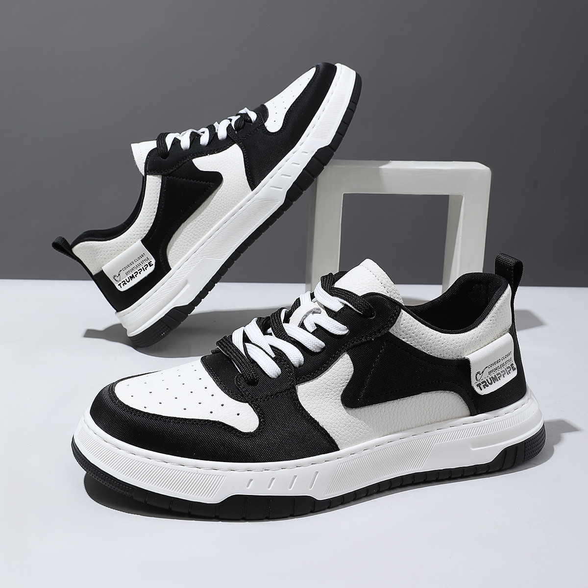 Мужские скейтерские кроссовки бело-черные TRUMPPIPE