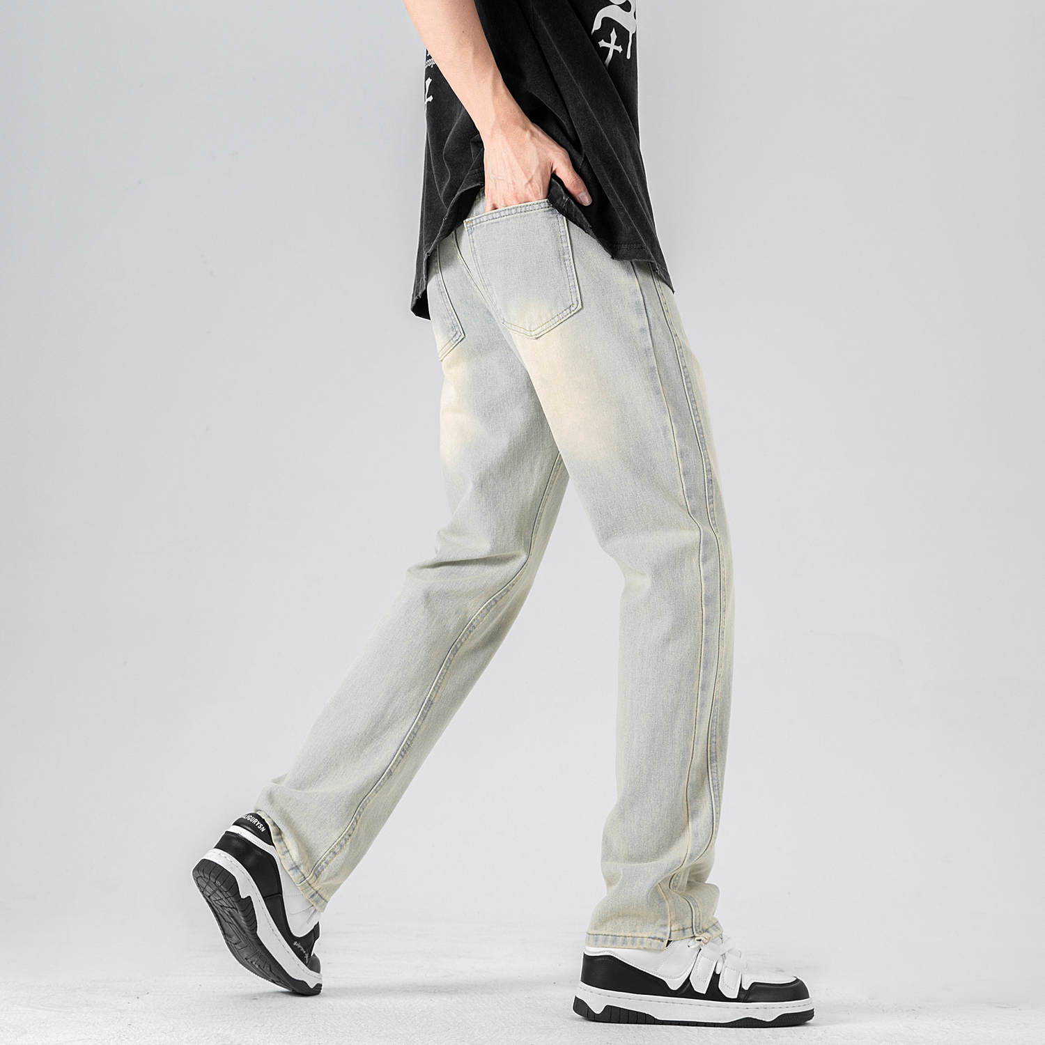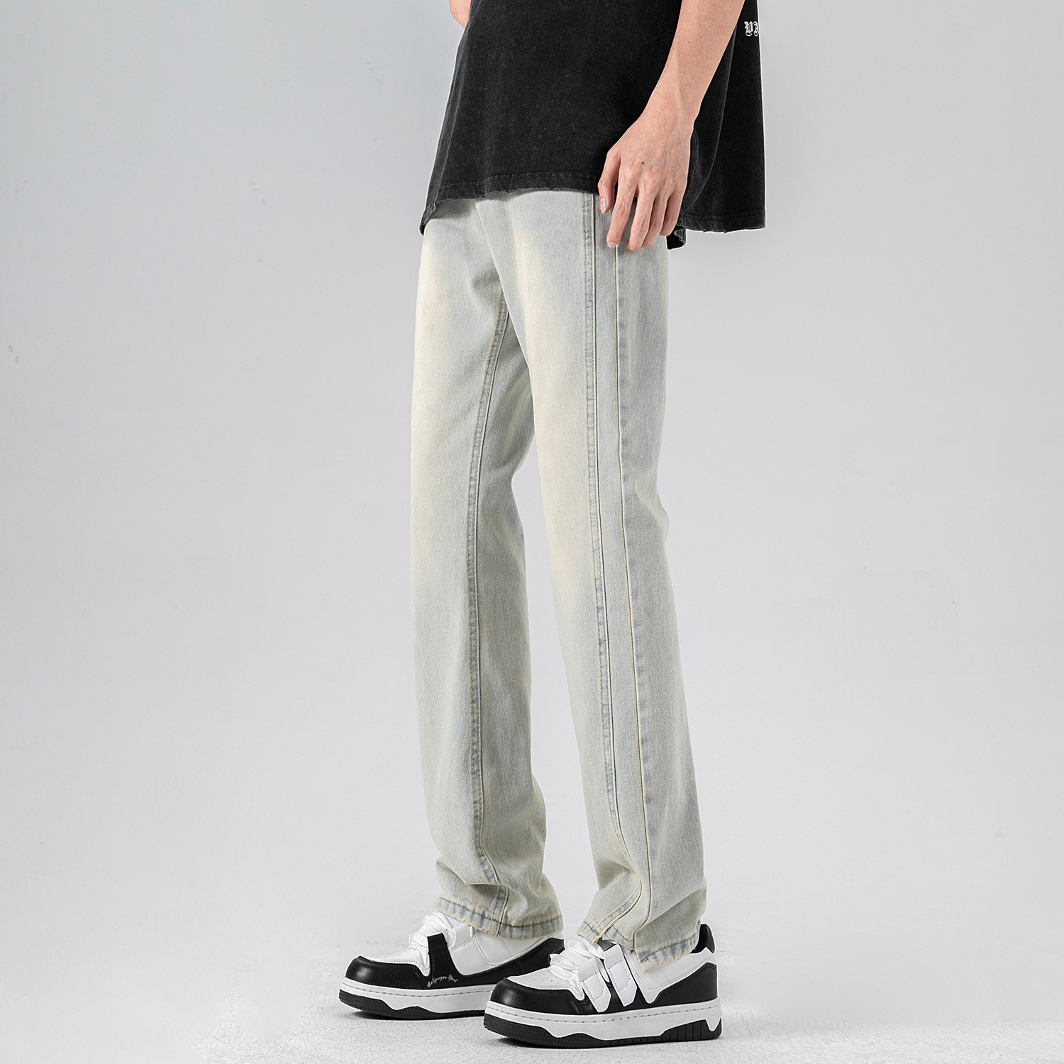 Визуальный эффект обусловлен яркостью и углом падения света. Фактический цвет может немного отличаться от изображения. Джинсы — это стираное изделие, поэтому возможны небольшие выцветания, связанные, например, с разницей в партиях производства. Это не является проблемой качества.