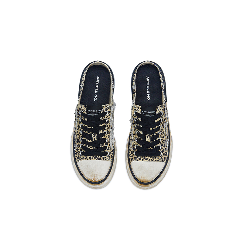 Закрытые тапочки унисекс черные Артикул, Леопардовый принт