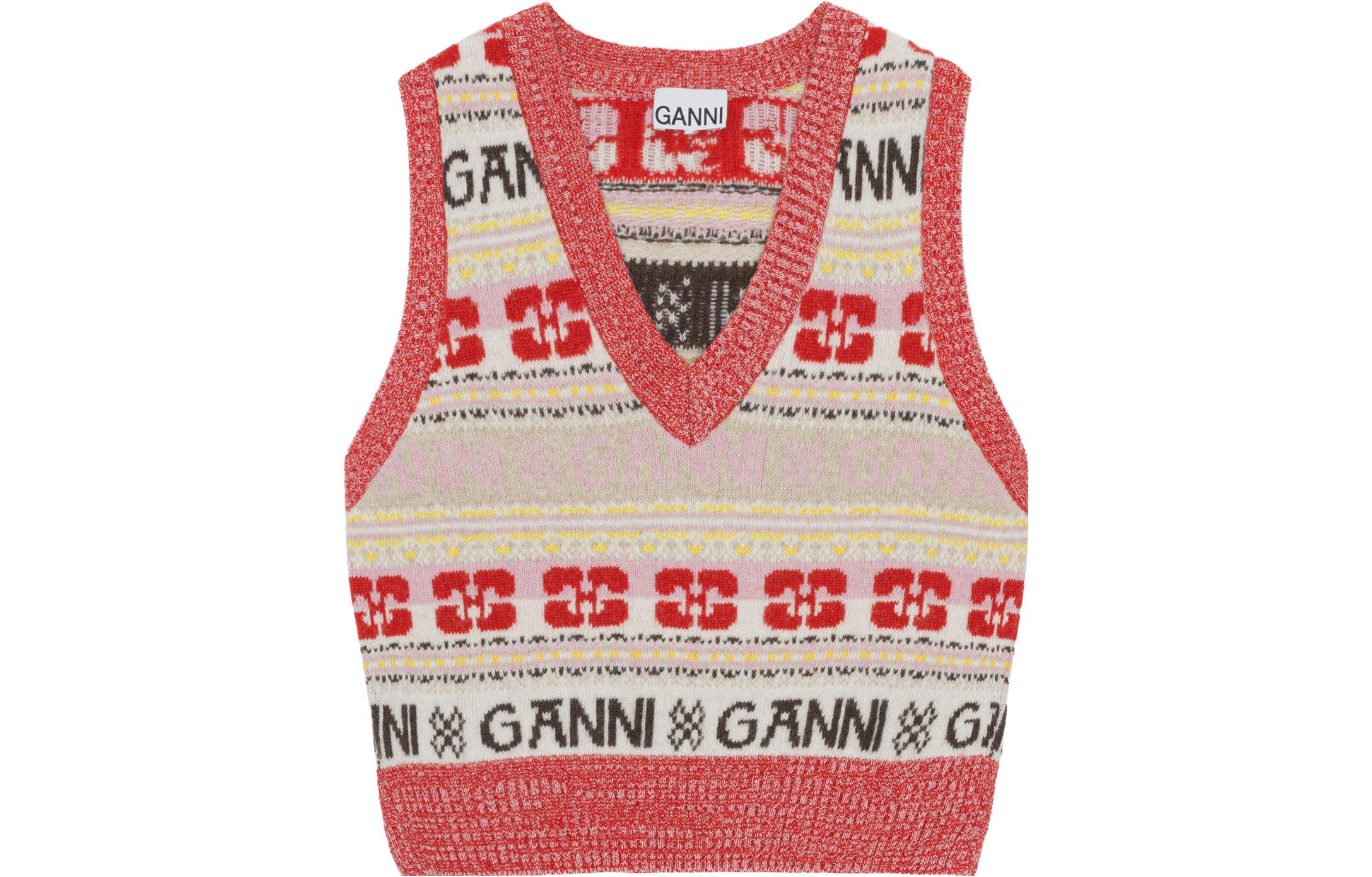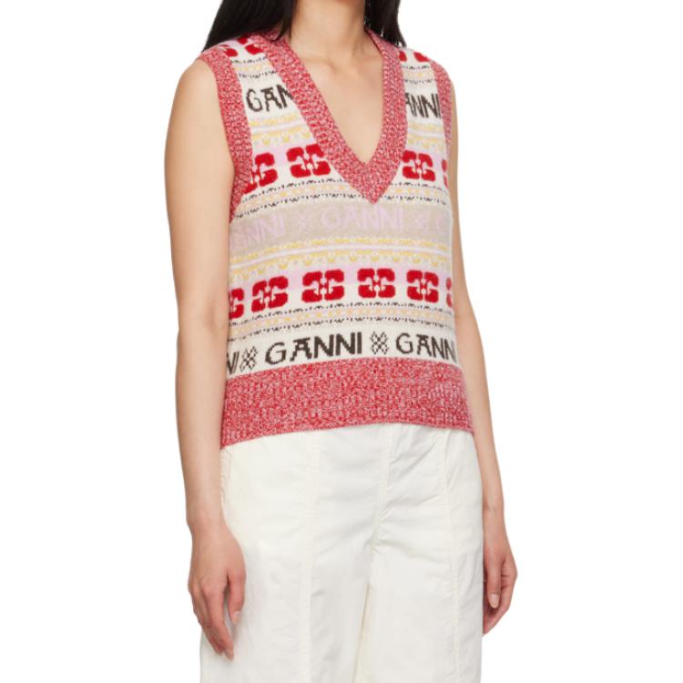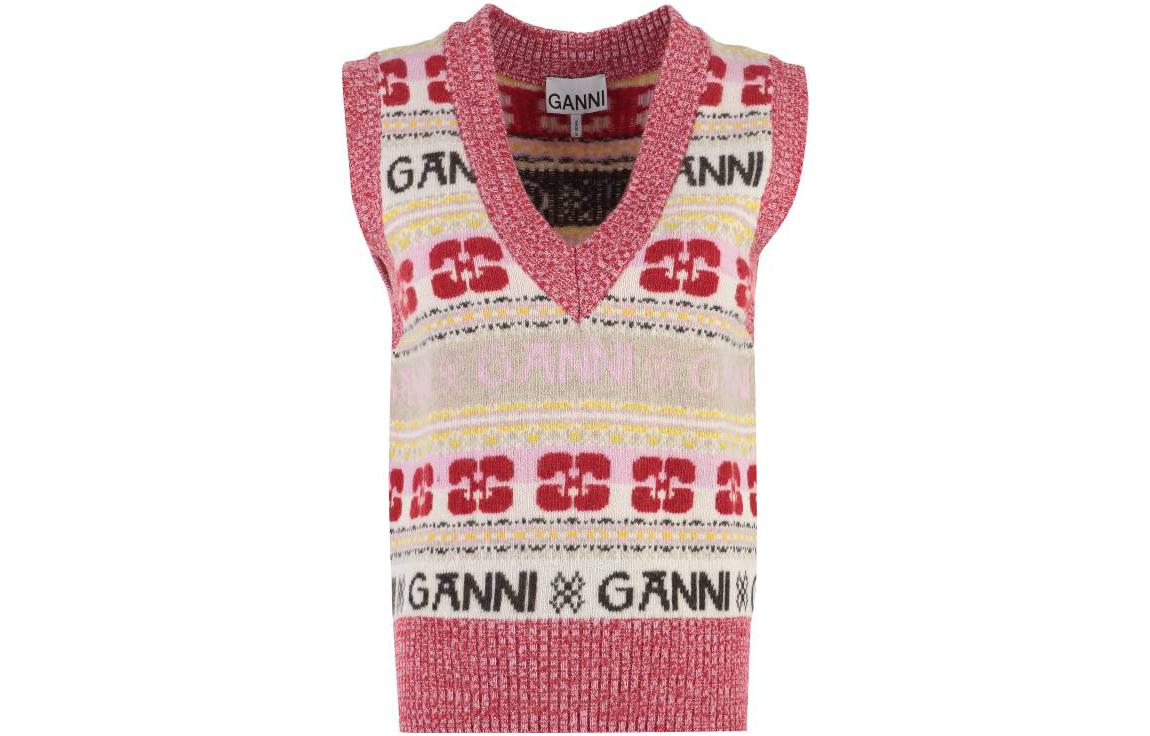 Вязаный жилет с интарсией и логотипом GANNI, розовый 13 847₽