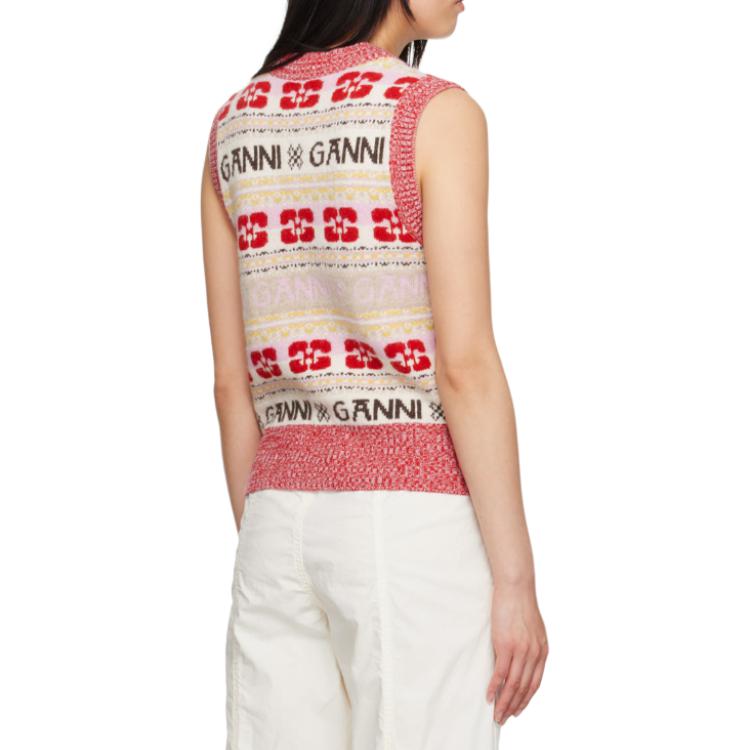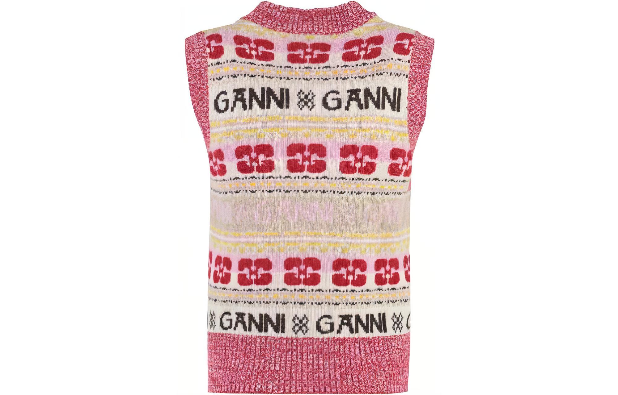 Вязаный жилет с интарсией и логотипом GANNI, розовый