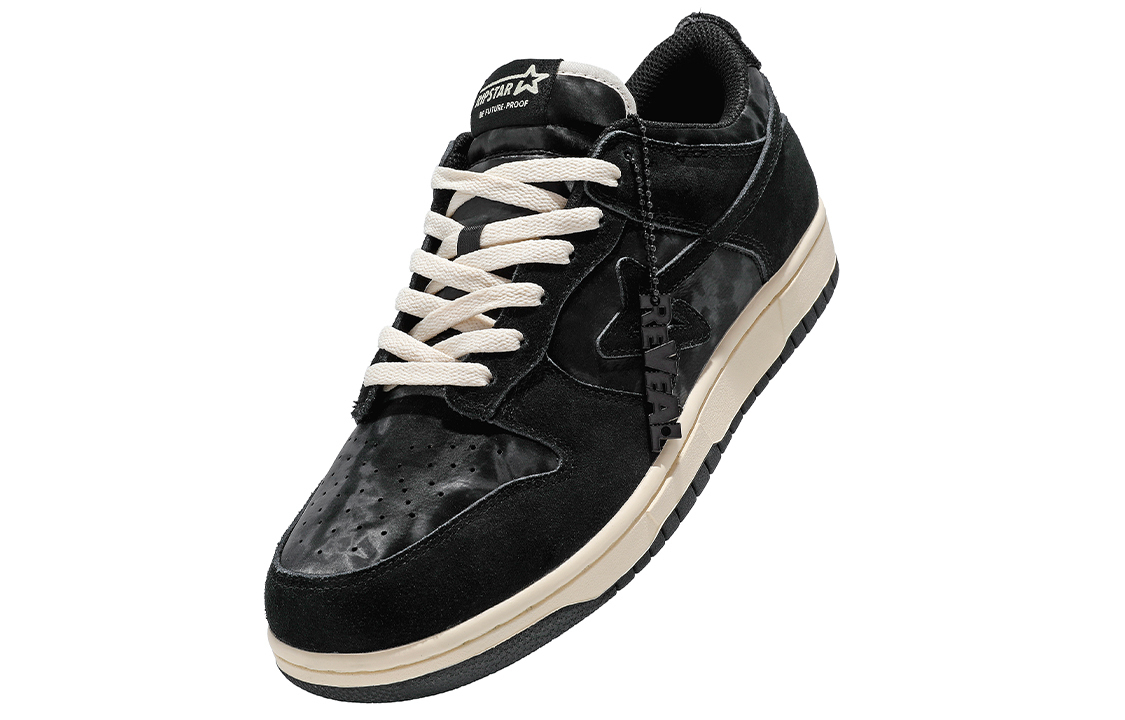 RIPSTAR и новаторский модный дом Revealsense представляют совместную работу, наполненную исследовательскими деталями и игривостью. Концептуальный и глубокий дизайн кроссовок сочетается с редким сатинированным металлическим материалом, создающим шелковистую гладкость и естественную переходную текстуру после обжига металла, а также обладающим высокой устойчивостью к царапинам и истиранию. Внешняя оправа и логотип в виде длиннохвостой звезды выполнены из черной замши, подчеркивая блеск и текстуру уникального материала. Это создает революционный стиль, сочетающий винтажные текстуры с богатыми элементами дизайна. Многочисленные элементы дизайна и фурнитура по всей модели воплощают фирменные элементы Revealsense этого сезона, символизируя откровение и раскрытие.