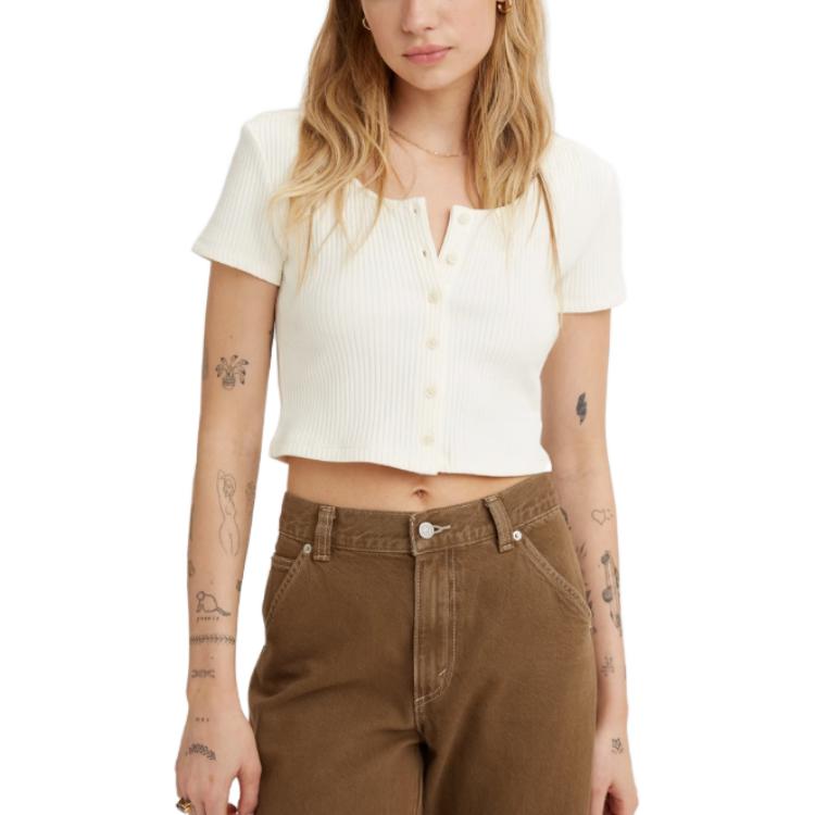 Левис Обычная футболка Женская Экрю