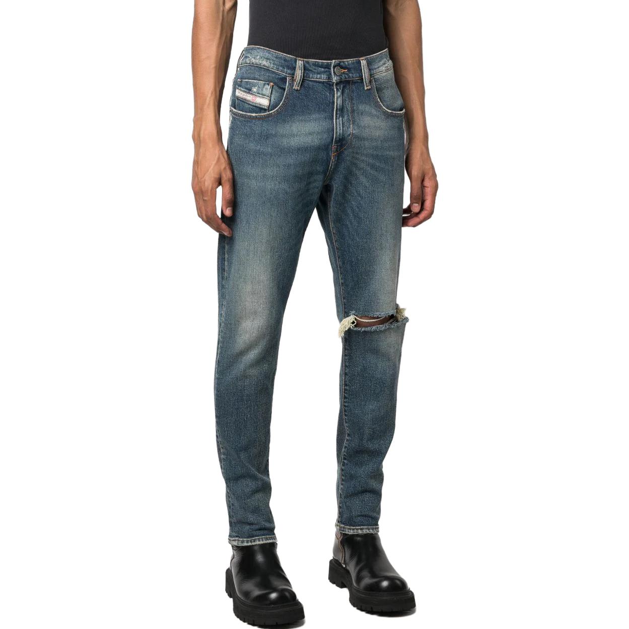 Джинсы Diesel с потертостями, завышенная талия, синие
