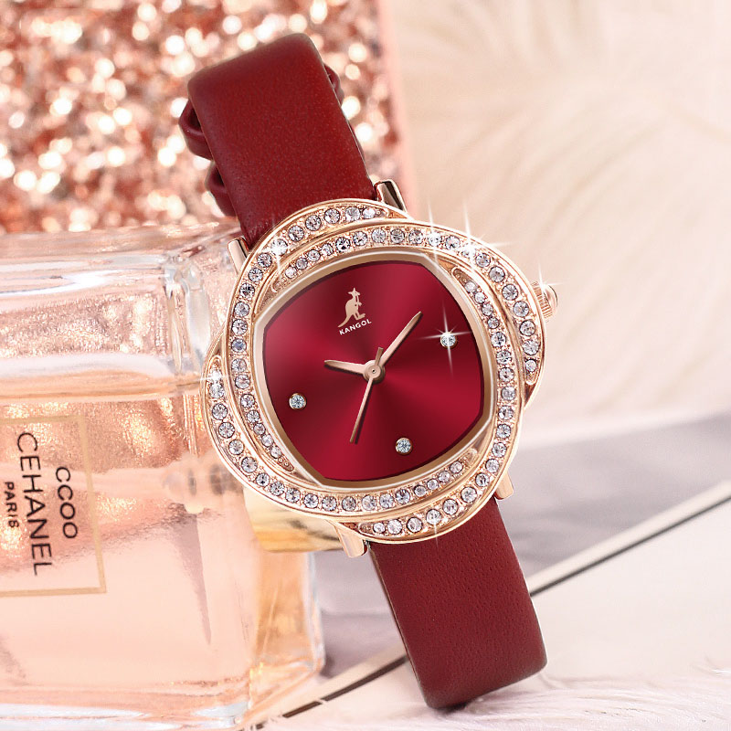 Стильный двойной безель выполнен в форме камелии, также известной как «Камелия любви». Часы изготовлены из высококачественного минерального стекла. Шкала 12 часов заменена логотипом бренда, а шкалы 3, 6 и 9 инкрустированы стразами, что выглядит очень элегантно и изысканно. Безель выполнен из двух овалов, инкрустированных стразами, и покрыт розовым золотом с вакуумным напылением. Ремешок – мягкий и удобный ремень из натуральной кожи с классической пряжкой, что очень удобно при ношении.