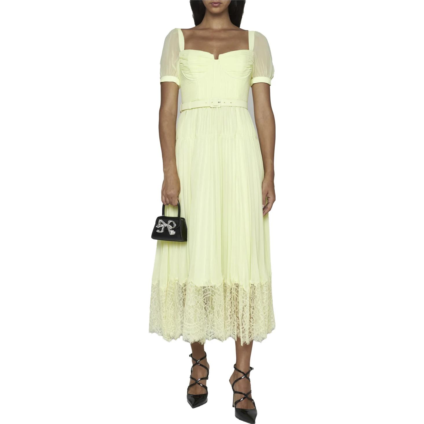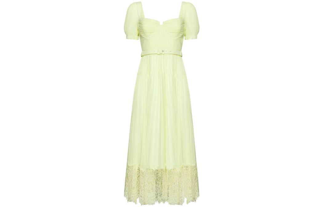 Женское желтое короткое рукав платье Self-portrait