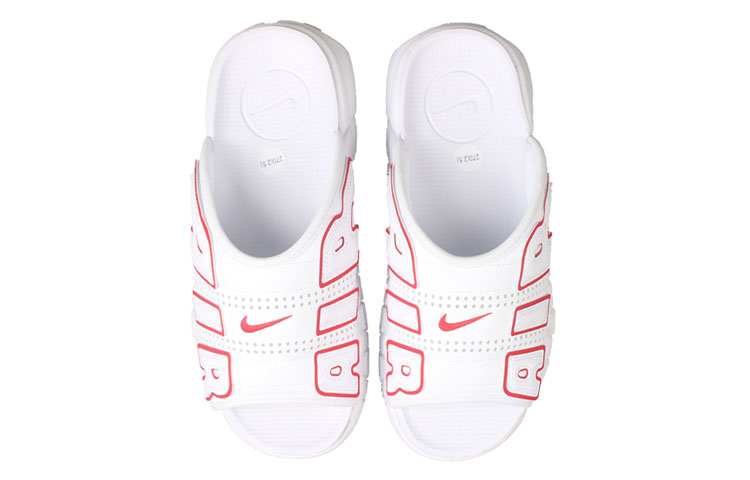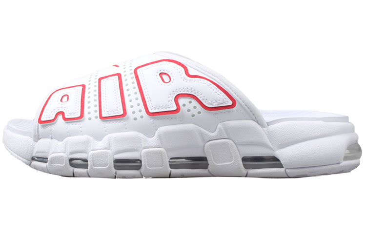 Эти шлёпанцы Nike Air More Uptempo, отдающие дань уважения оригинальным Air More Uptempo Скотти Пиппена, имеют чёрную нубуковую подошву со знаменитой надписью «AIR» в белом обрамлении. Шлёпанцы также украшены логотипами Swoosh по всей поверхности и имеют видимые воздушные пузырьки под стопой.