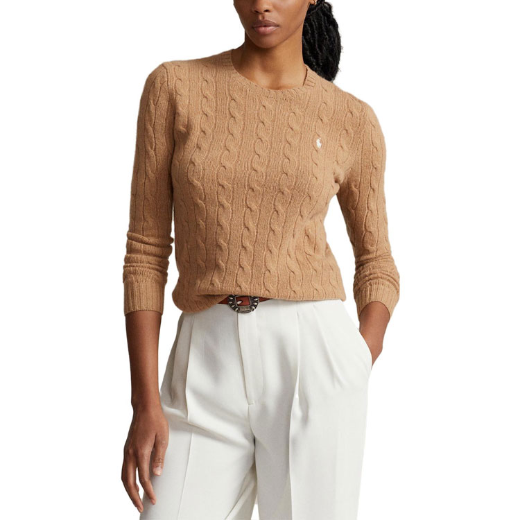 Пуловер с вышивкой пони и косой вязкой Polo Ralph Lauren, верблюжий