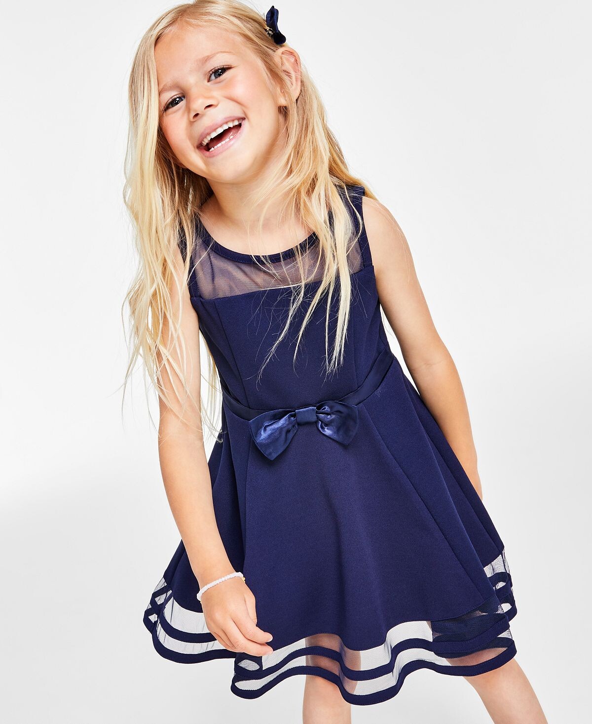 Платье из сетчатой ​​ткани с бантом спереди для маленьких девочек Calvin Klein