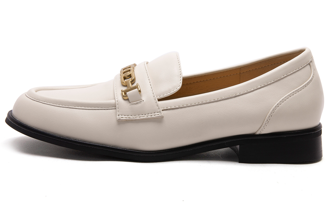 Эти свободные лоферы идеально вписываются в комфортный и непринужденный образ жизни современной молодежи. Изготовлены из мягкой коровьей кожи кремового оттенка, имеют подкладку и стельку из свиной кожи для воздухопроницаемости. Металлическая пряжка в форме цепочки в стиле ретро — новинка. Удобный верх и легкая тонкая резиновая подошва создают непринужденный и непринужденный образ. Эта модель дополнит любой наряд, создавая стильный образ.
