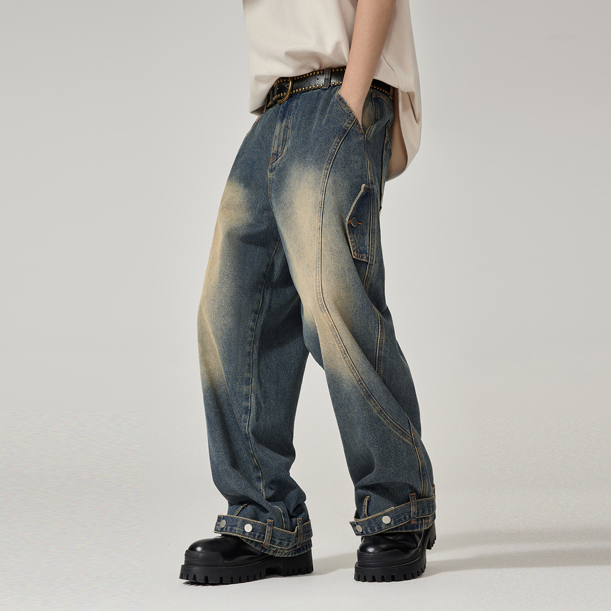 Джинсы Unisex EPTISON, винтажные потертые голубые
