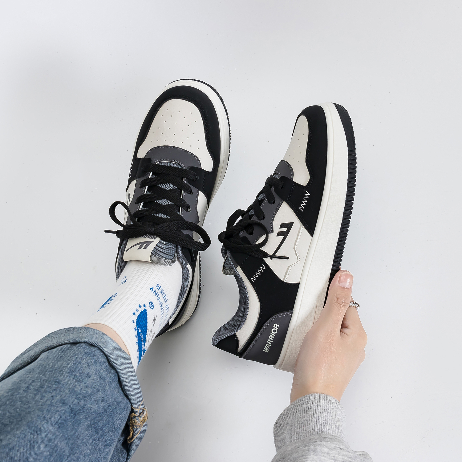 Warrior Low Top Skateboard Shoes Unisex White Black, White/Gray Bamboo 2 117₽