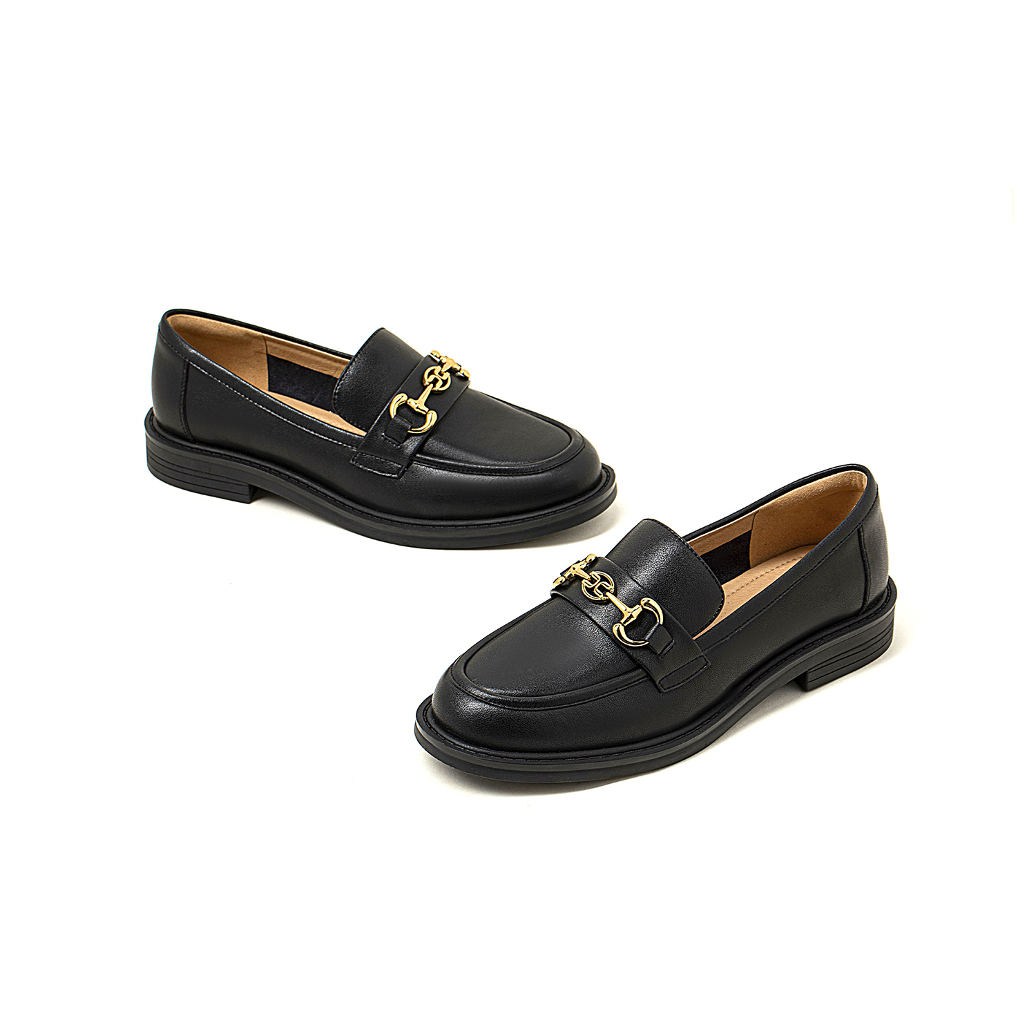 Лоферы женские черные COMELY, черные (кожа коровья с принтом крокодила)