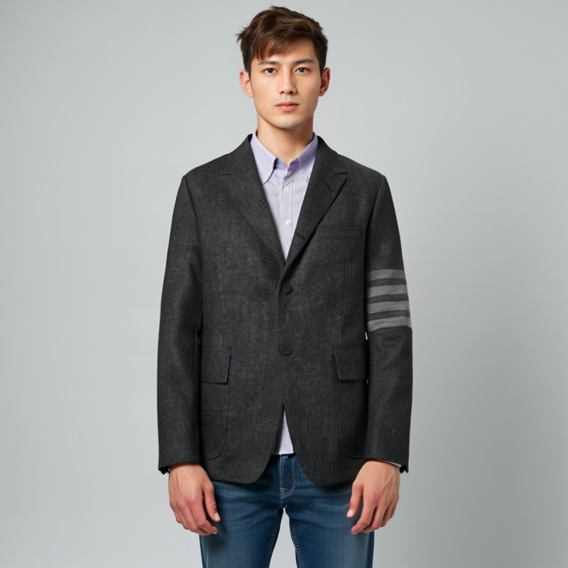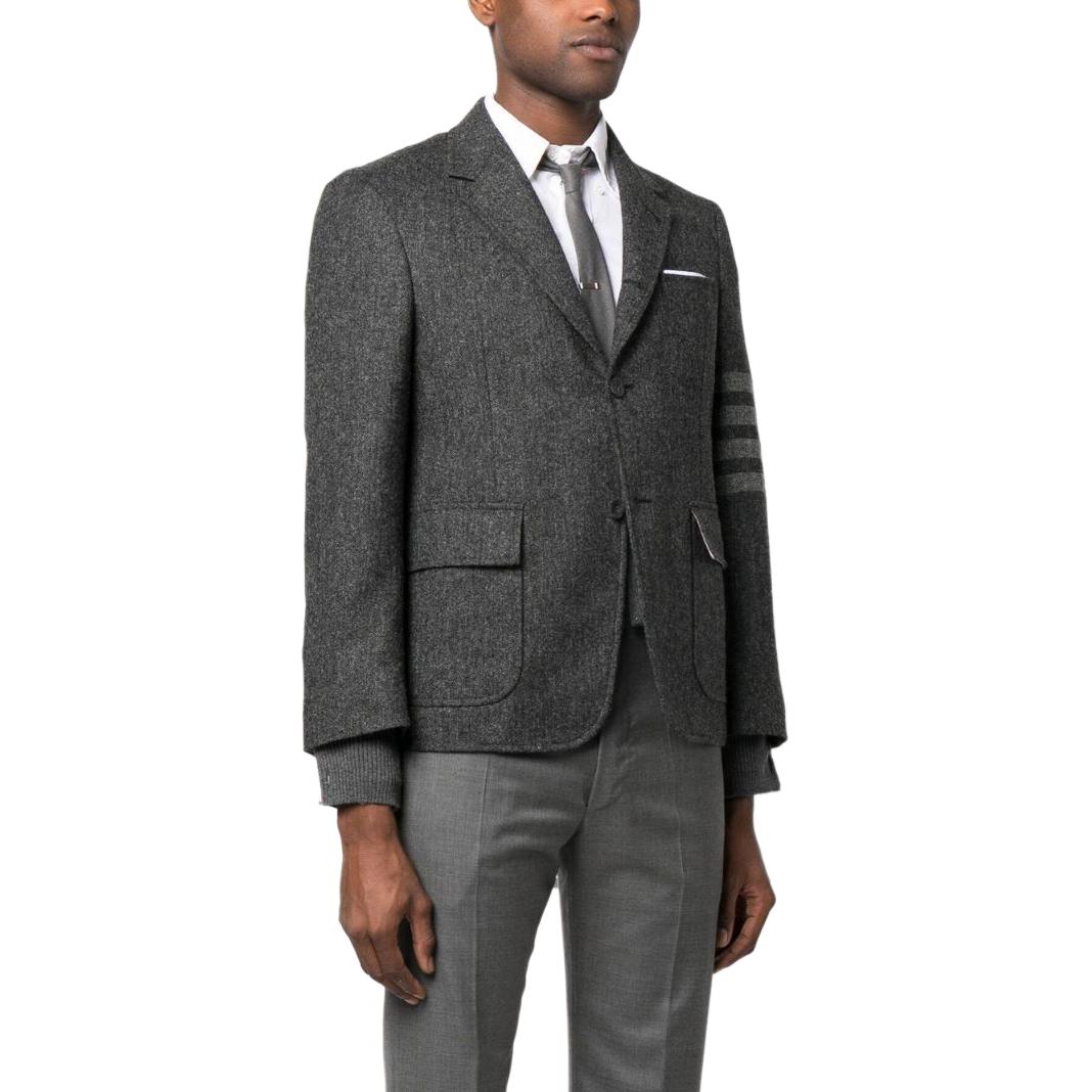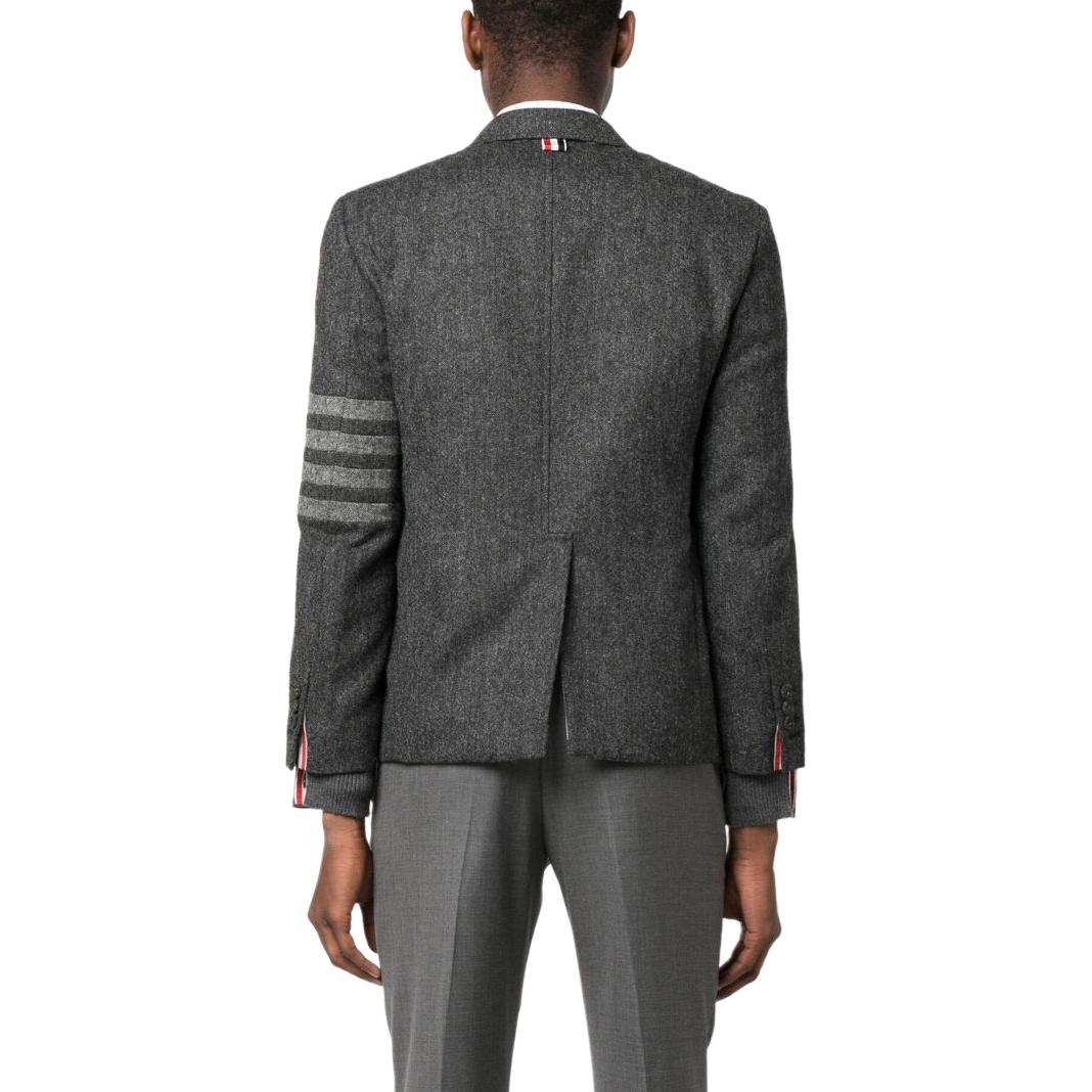 Полосатый детализированный однобортный приталенный блейзер THOM BROWNE, серый