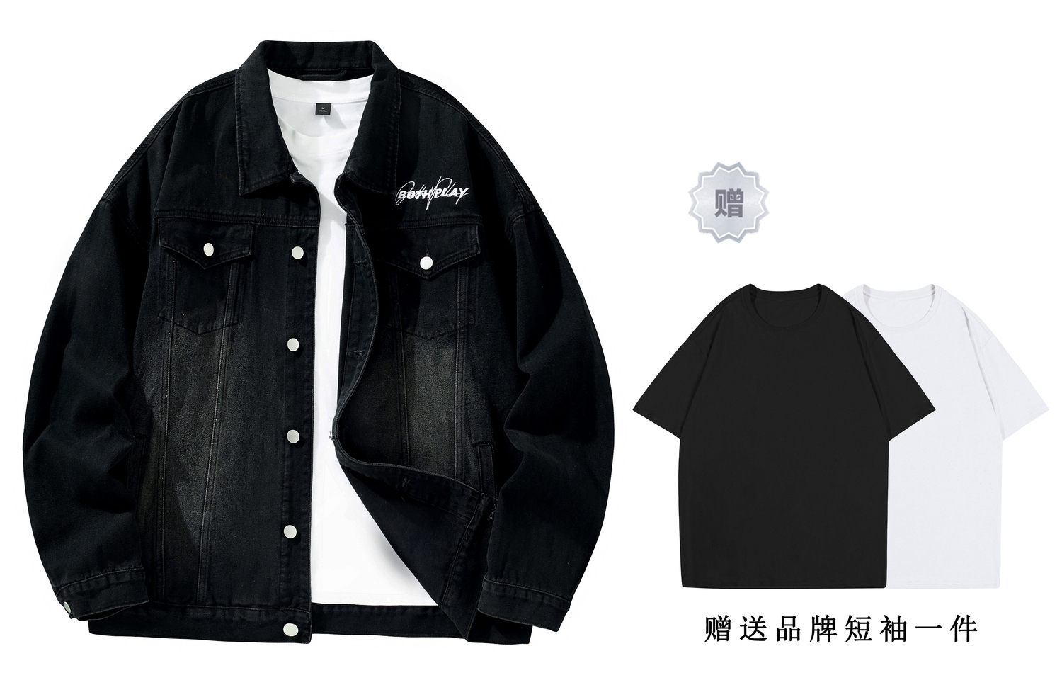 Джинсовые куртки унисекс BOTH PLAY, черно-серый градиент (в комплекте случайная футболка)