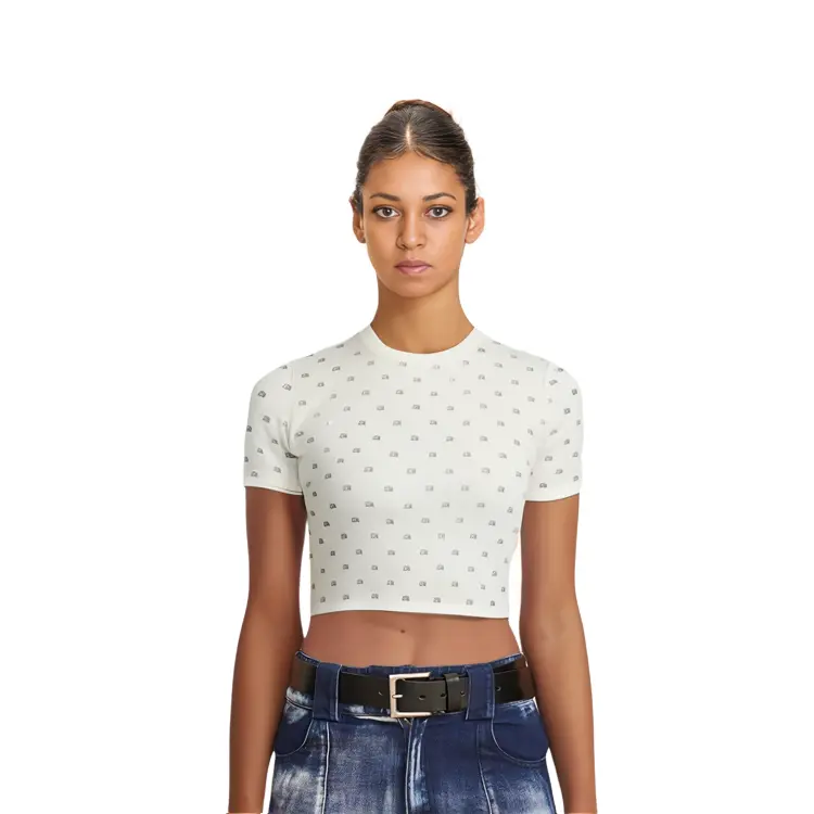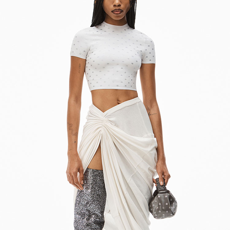Кроп-топ с кристальным логотипом Alexander Wang, белый