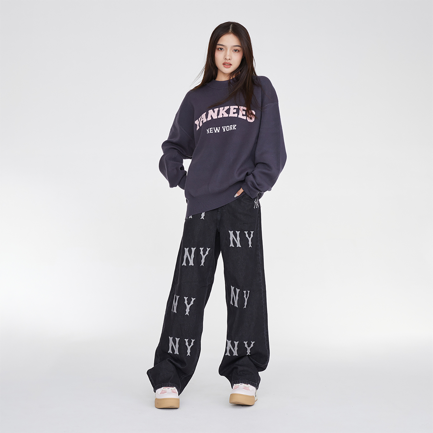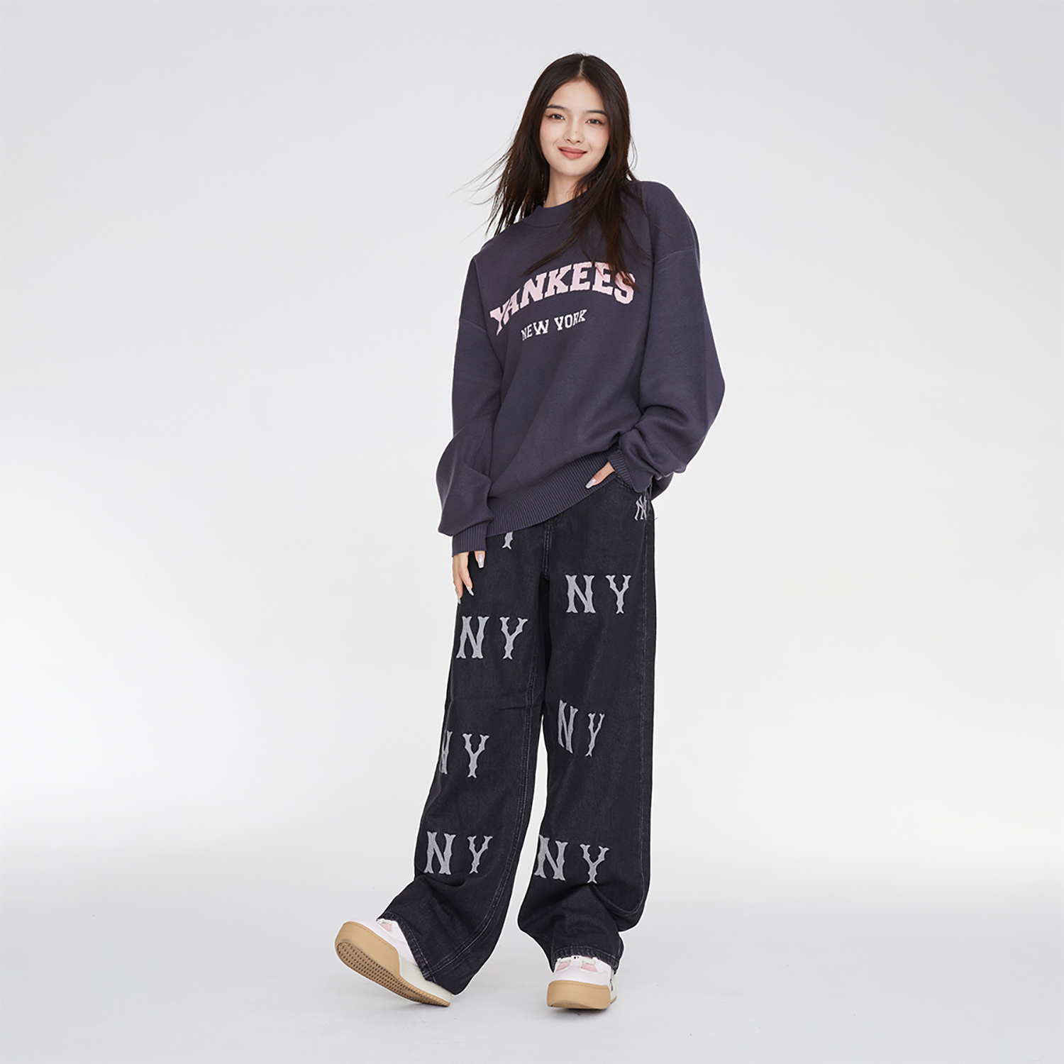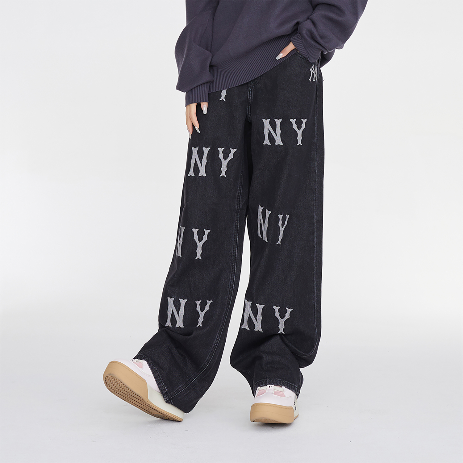 Широкие джинсы женские черные MLB