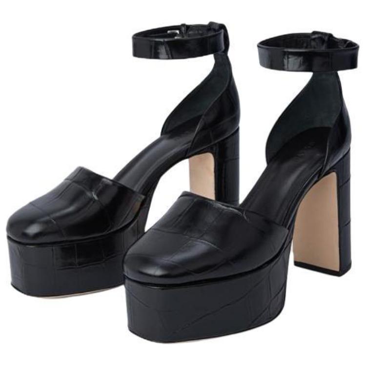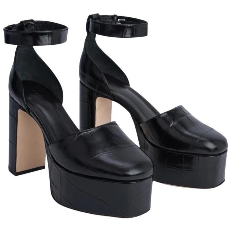 Бархатные сандалии 120 мм с эффектом крокодила от Far, черные