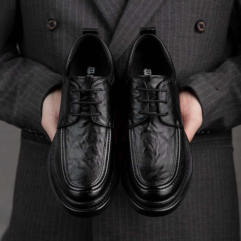 Мужские классические туфли SULEGAO черные на утеплённой подкладке (увеличение роста на 6 см)