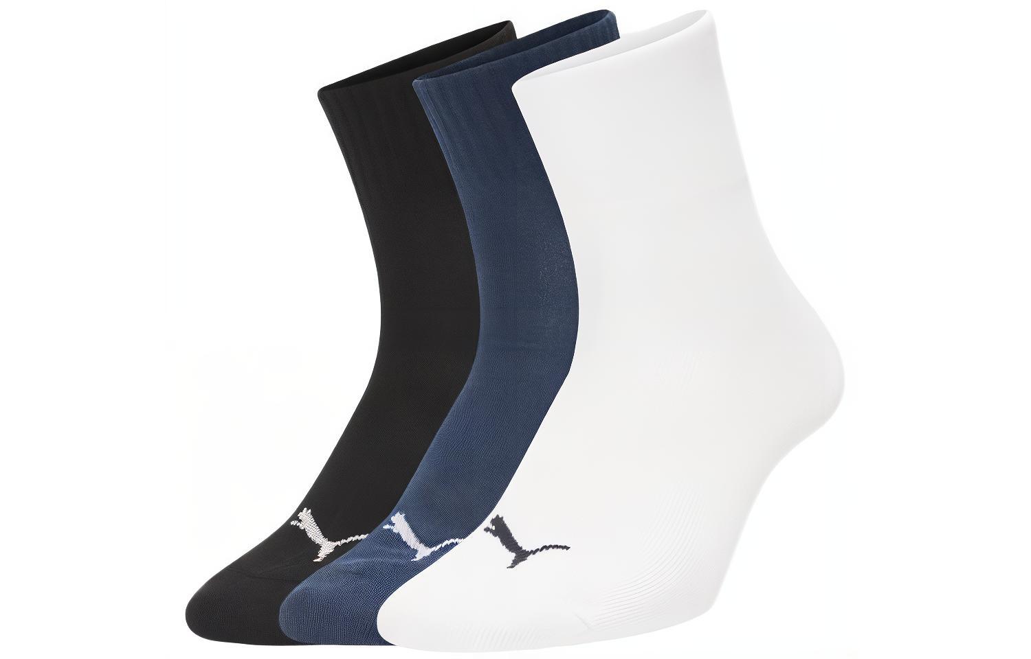 Унисекс носки до середины икры PUMA, 3 пары (Морской синий+Чёрный+Белый)