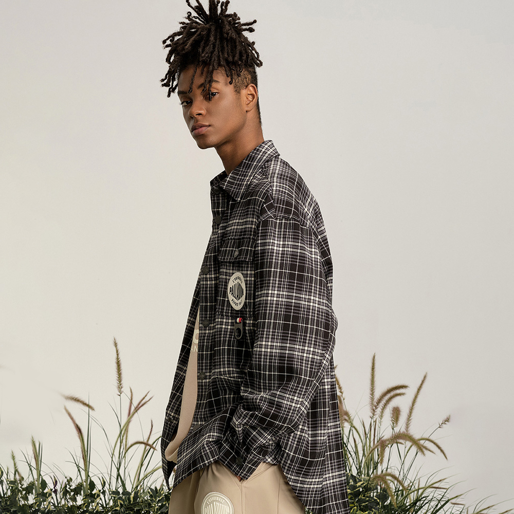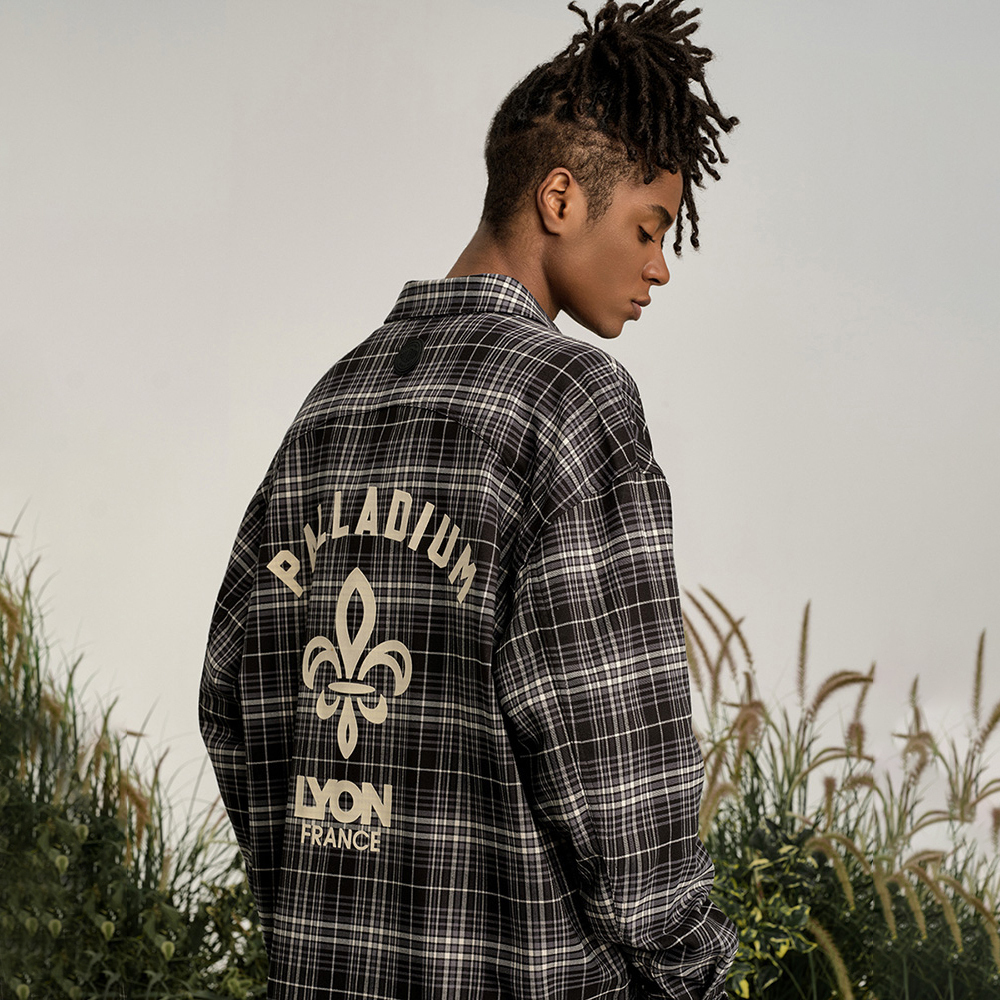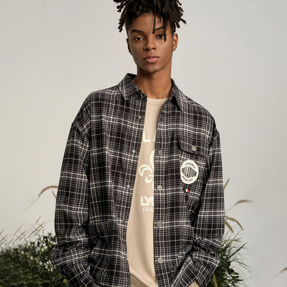 Футболка мужская Palladium, серая черная клетчатая полоска