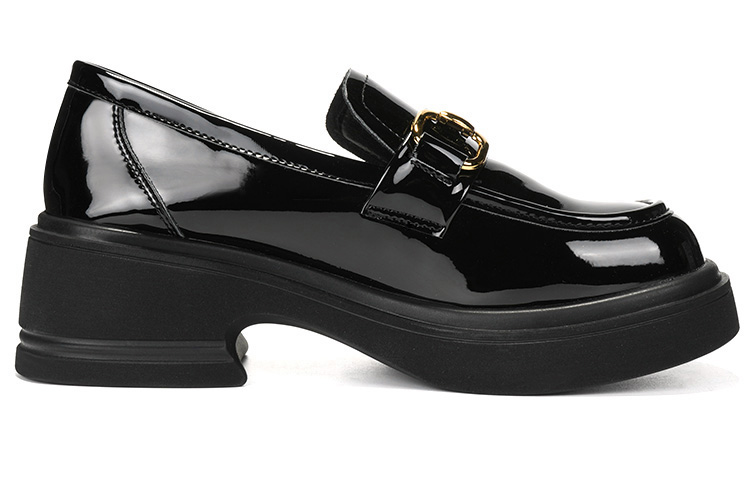 Балетки Лоферы 5 см Женские Черные OMS, Черные с Золотой Пряжкой